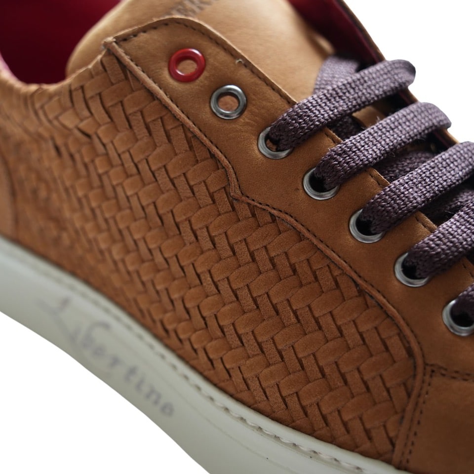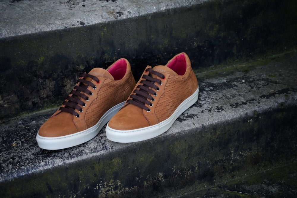 The ‘Nobuck’ Cup sole trainers on our Apollo last shape features genuine hand woven leather side panels – featured here in tan toledo hand coloured calf.