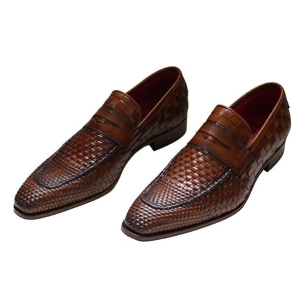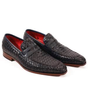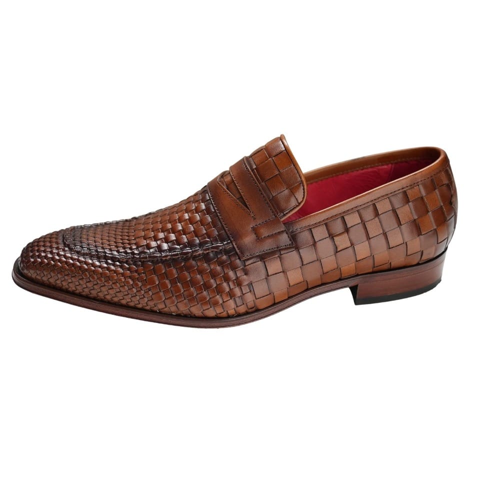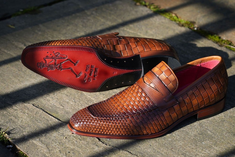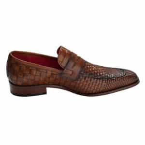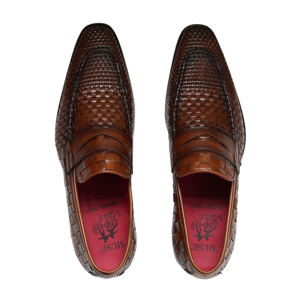 The Soprano Leather Loafers from Jeffery West comes with embossed branding on sole and weave design, featuring red all over branding inside lining and lace. Coming in Castano Woven Leather colour, these suede loafers sport a stitched detailing and slip-on style.