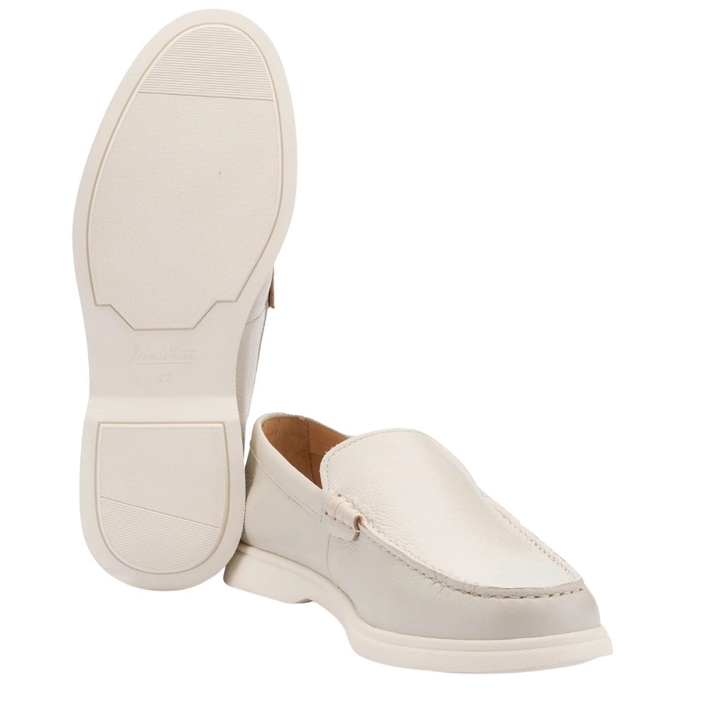 Fresh and stylish, the John White Ethan White Grain Boat Shoes are crafted from premium grain leather for a timeless maritime-inspired look. Featuring classic leather laces, a cushioned insole, and a durable rubber sole, they provide excellent grip and all-day comfort. Perfect for warm-weather smart-casual styling, whether by the coast or in the city.
