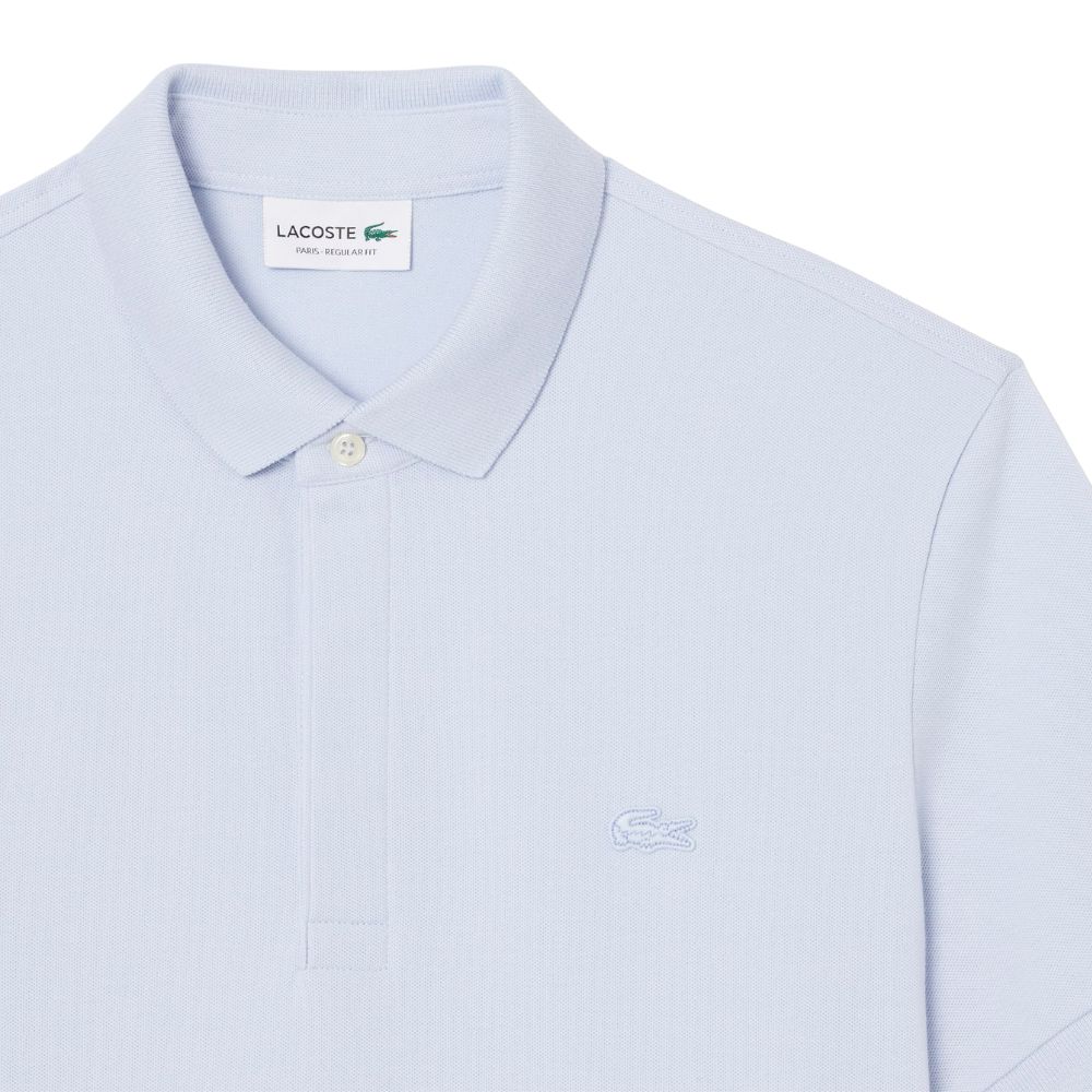 This light blue Lacoste Regular fit Green Polo Shirt with a signature stretch knit hidden button placket, tone-on-tone crocodile and a tailored finish.
