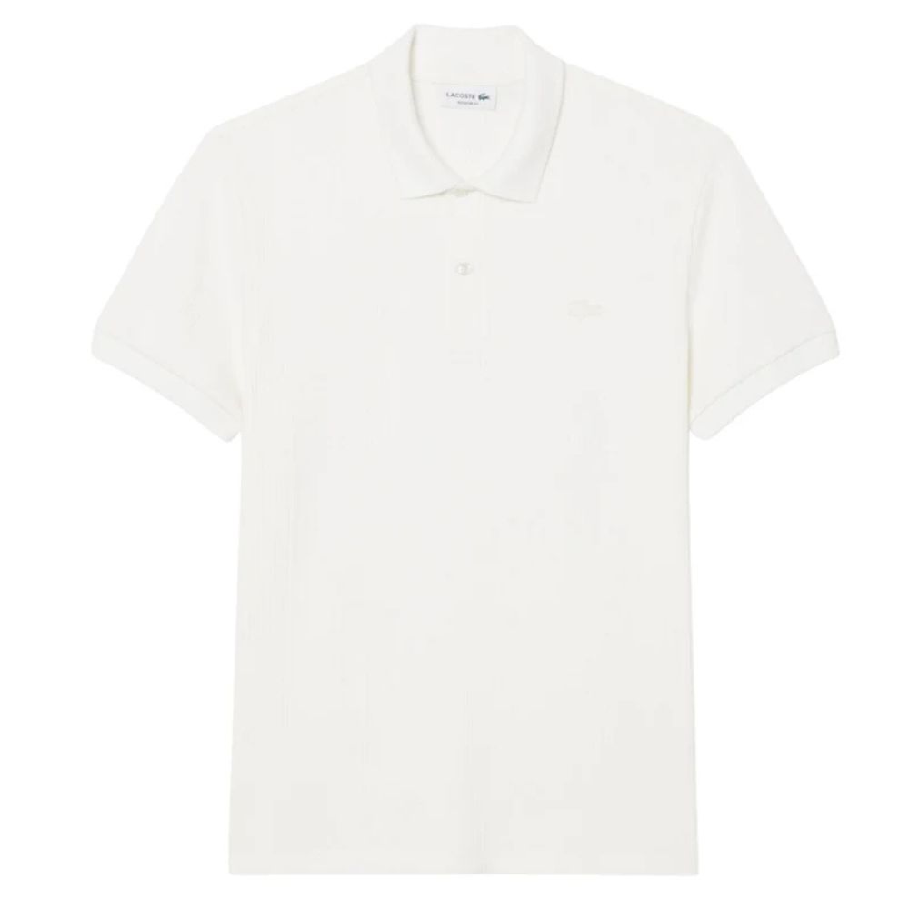 This timeless Lacoste polo showcases a refined ribbed cotton construction in a versatile flour tone, offering a contemporary take on a wardrobe staple. The white crocodile emblem is subtly positioned on the upper left chest, representing authentic Lacoste craftsmanship. Engineered with a regular fit silhouette, short sleeves, and a classic polo collar with button fastening, this piece delivers effortless versatility. The ribbed cotton fabric provides excellent durability and maintains its shape through repeated wear, whilst the neutral colour palette ensures seamless coordination with your existing collection. An investment piece that epitomises understated sophistication.
