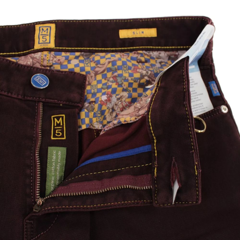 These Burgundy slim Fit Jeans impress with their casual elegance and top comfort. The super-stretch fabric ensure unrestricted freedom of movement thanks to exceptional flexibility. With a modern silhouette and exclusive features, these denims are perfect for everyday business as well as sporting activities.