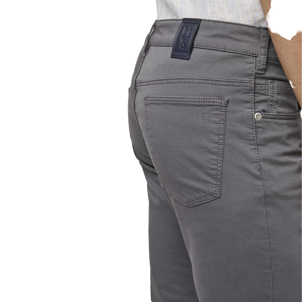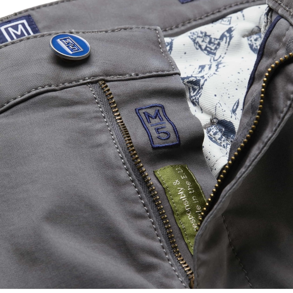 The lyocell (TENCEL™) synthetic fibre of these M|5 SLIM is obtained from sustainable forestry and offers many advantages: Excellent moisture management, odour-neutralising effect and high breathability. In addition, the fibre does not crease, is tear-resistant, colourfast and durable. The special round waistband of this five pocket ensures unmistakable wearing comfort. Special details, such as the blue jeans button, the coin pocket, an additional coin pocket in the right front pocket as well as the elaborately crafted inner lining make the five pocket into a real M|5 denim.