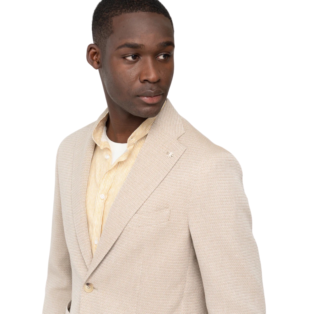 Nuvola drop-eight unlined jacket, two button fastening, two patch pockets and one breast pocket on the front, two slits on the back, four buttons at the cuffs, topstitched trim. Armoured cotton blend.