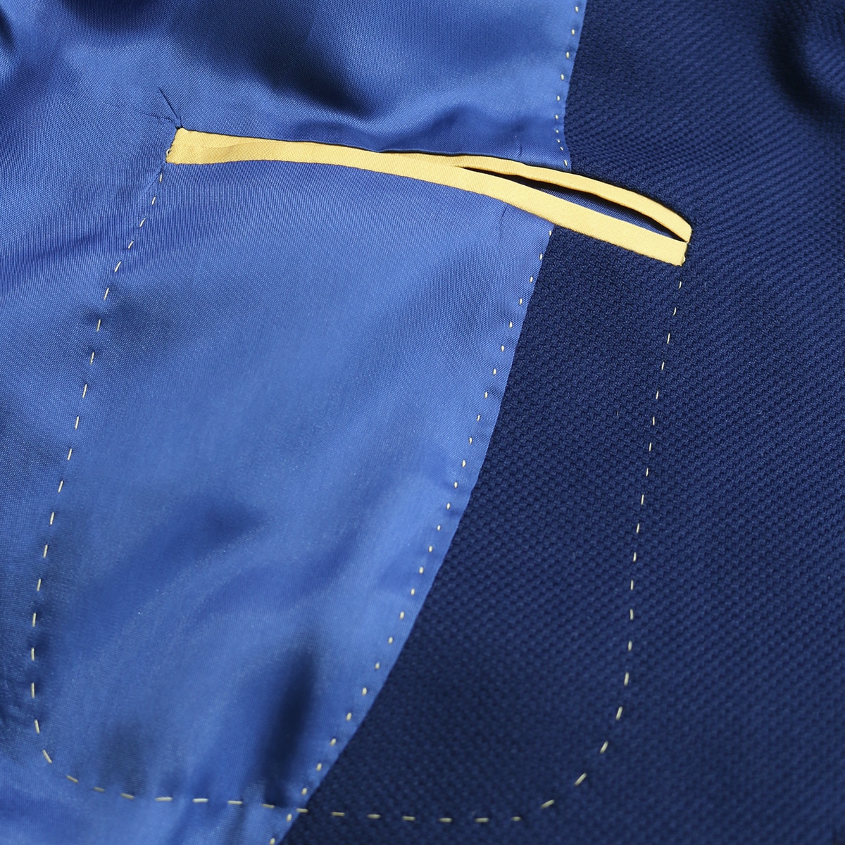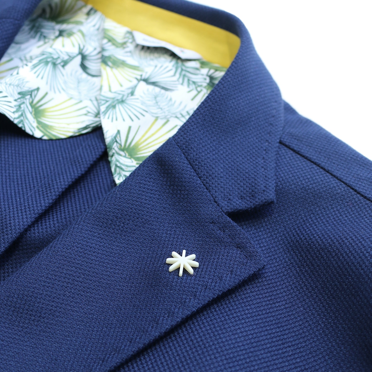 This unstructured Slim fit navy Manuel Ritz jacket has Patch pockets, and side vents. This makes for a relaxed and casual look.