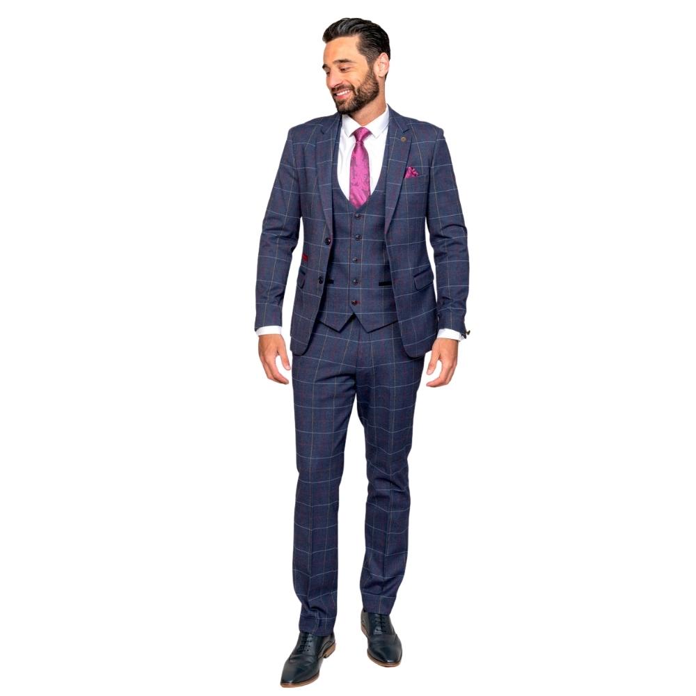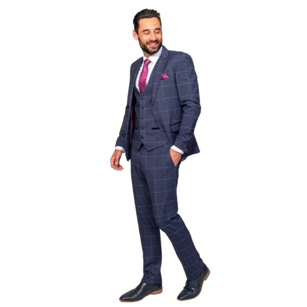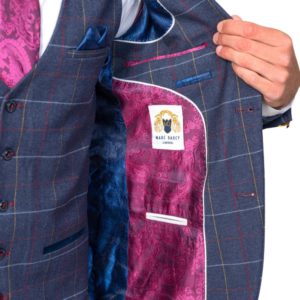 Make an entrance in the Drake suit. In a timeless navy blue with a contrasting multi-tonal check and statement MD colour pop lining, this stand-out piece is fit for every formal occasion. This suit is made with added elastane to allow comfort, stretch and breathability throughout the day. All Marc Darcy suits are cut to a slim-fit to give a flattering silhouette. Throw on the two-piece suit for bold office wear or dress it up to the nines for a day at the races.