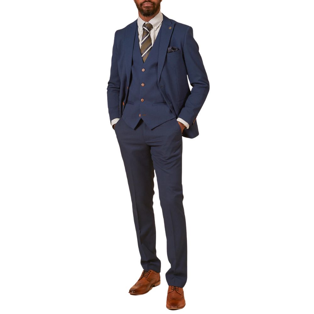 Look no further for that office suit, this Marc Darcy Max three piece suit will do just the job. The hints of tan will distinguish it from the sea of uninspiring suits on your commute and the complementary camouflage print pocket square adds a modern edge. It is classy, sophisticated and refined, all that a good suit should be.