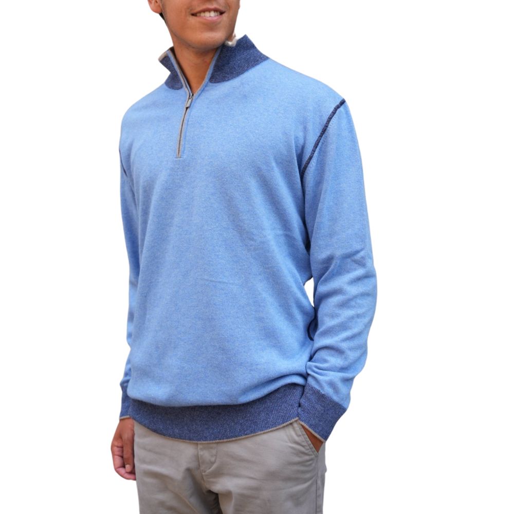 Elevate your wardrobe with our Cashmere Half Zip Jumper, crafted from the finest cashmere for unmatched softness and warmth. The versatile half-zip design allows you to adjust the neckline for a relaxed or refined look, while ribbed cuffs and hem ensure a snug fit.