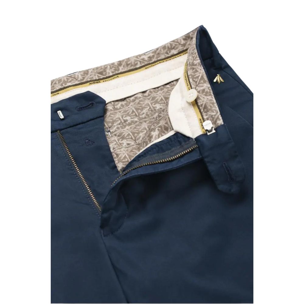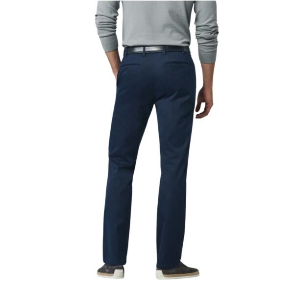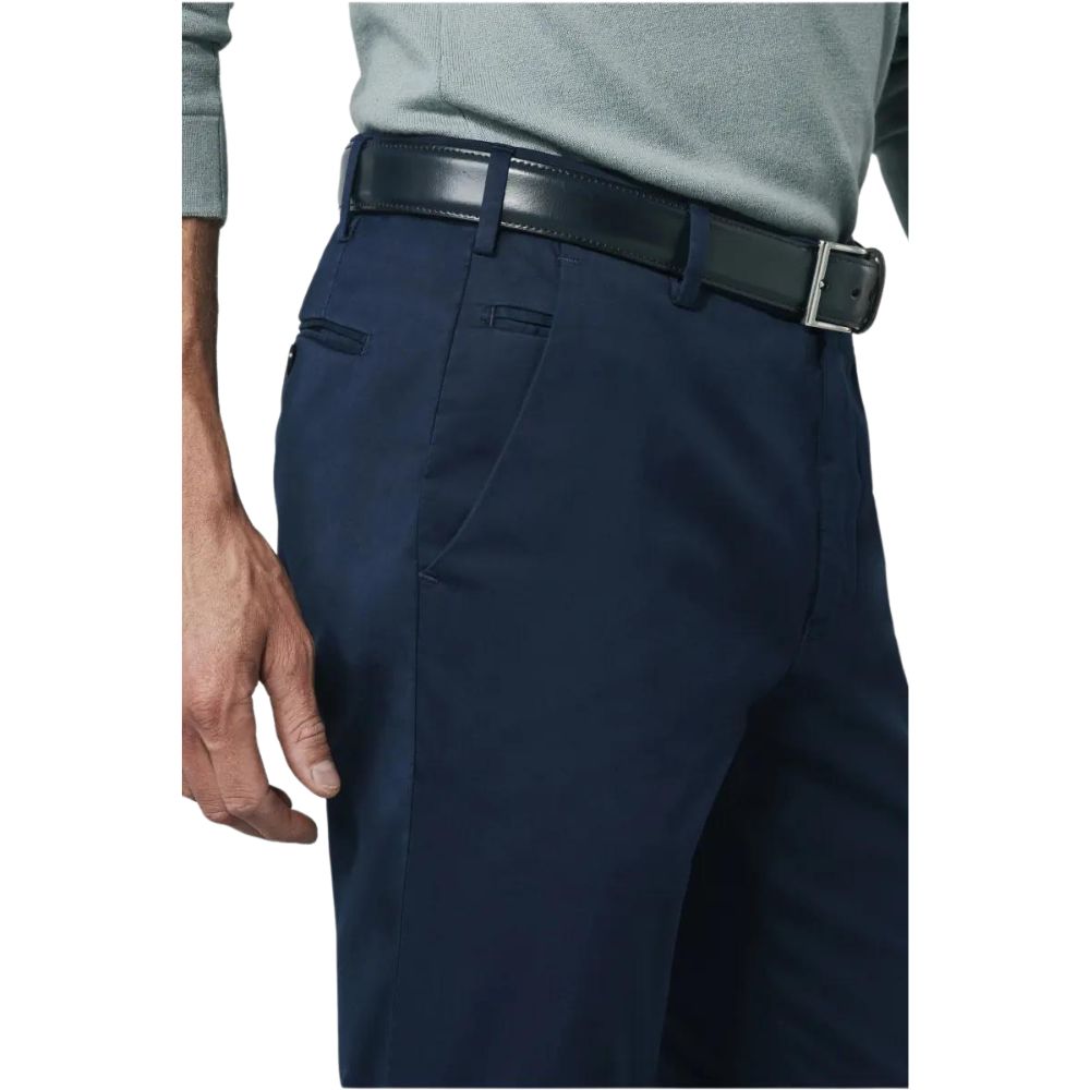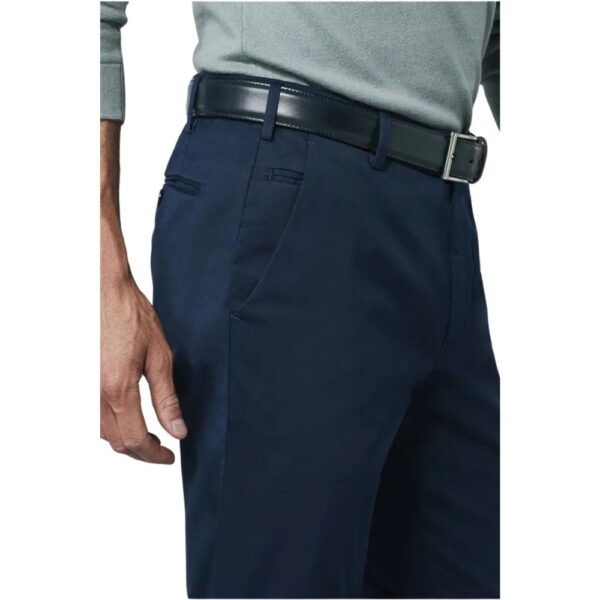 An absolute must on hot, sunny days: Our slim-cut MEYER EXCLUSIVE Bonn chino. Thanks to the use of a particularly high-quality cotton silk chino blend with 100% organic cotton and the special round waistband, these chinos are comfortable to wear and keep their shape. These chinos with a semi-sartorial finish impress, as do all trousers in the MEYER EXCLUSIVE range: Many of the production steps, such as stitching and turning out the pocket pouch, demonstrate real craftsmanship. Valuable features, such as the colourful woven inner lining, the after-dinner split and the hidden security pocket in the left pocket pouch, reflect the attention to detail involved in making these trousers.