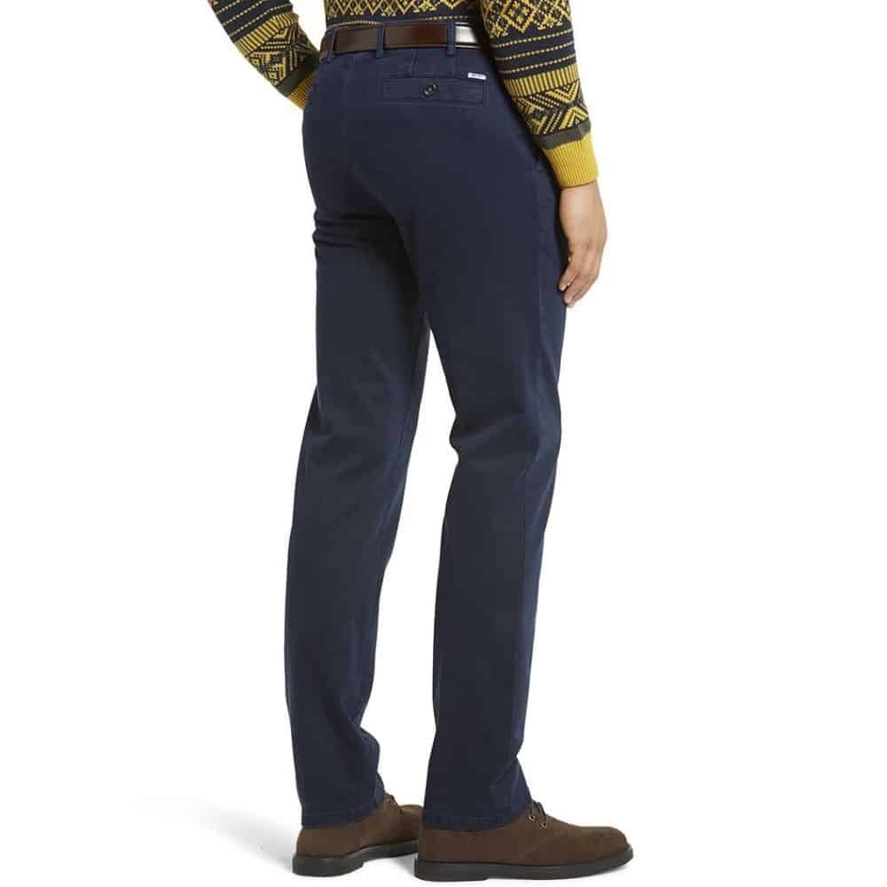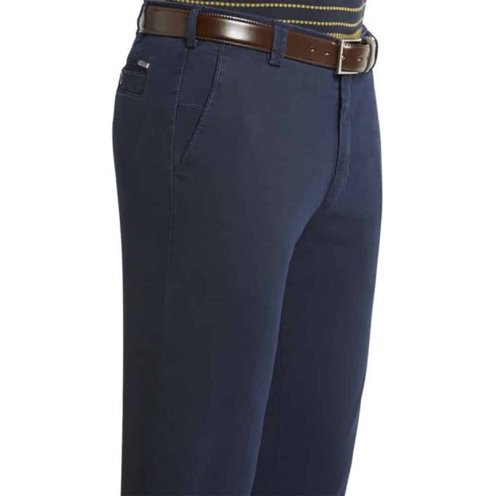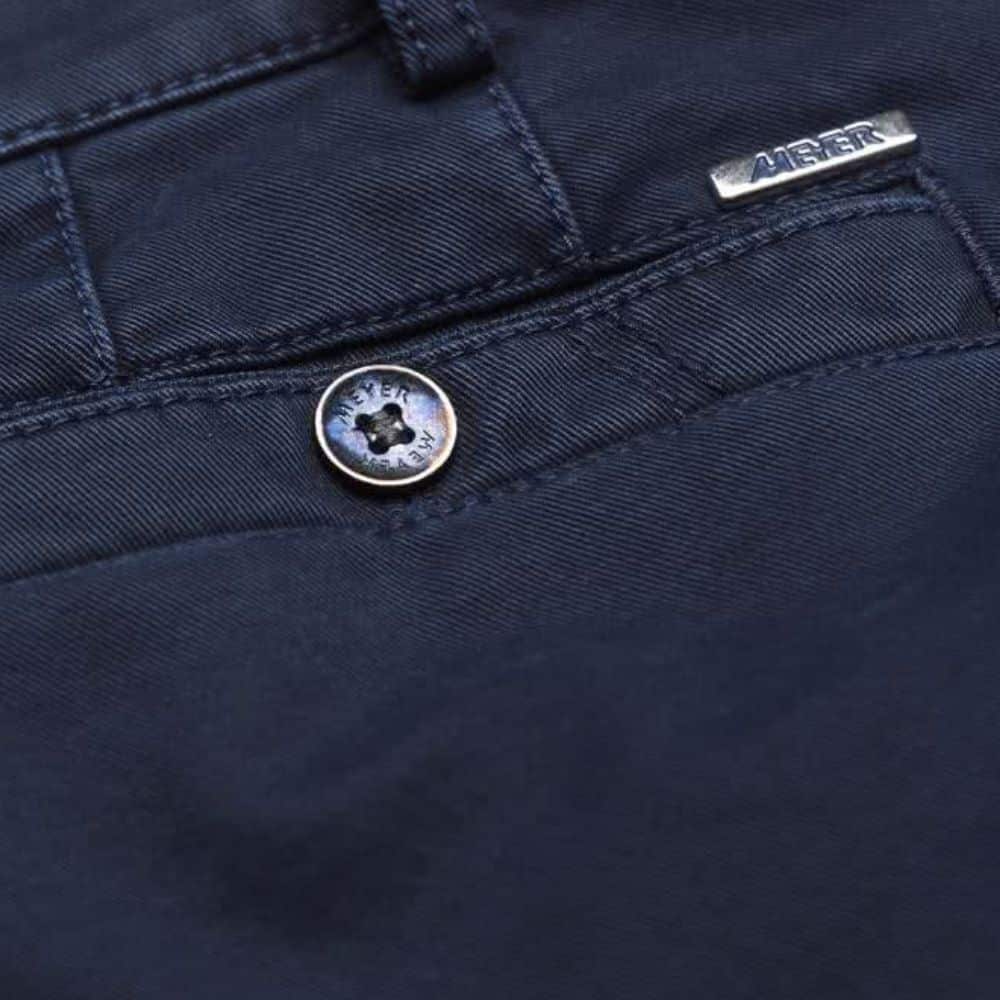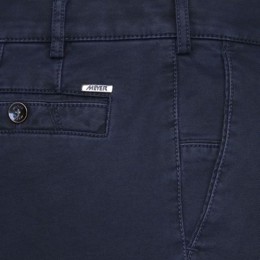Meyer New York Cotton Navy chinos in a modern fit with a rustic, rugged blue double dye. Minimal hip and fashionable details, such as a zipped security pocket, colourful woven inner lining and special rounded waistband ensure a perfect fit and ultimate comfort in keeping with a New York style.