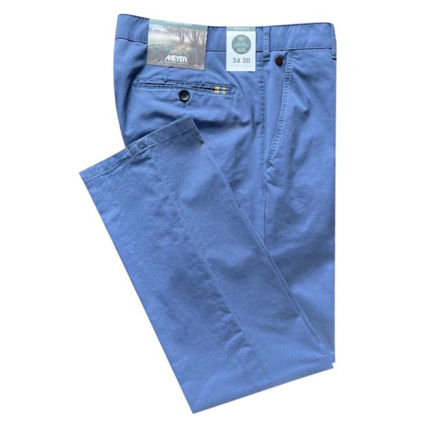 This Meyer Rio Pure Organic Cotton Cornflower Blue Trousers are sustainably produced year round in an easy care cotton. Additional details, such as the hidden security pocket in the left pocket pouch and the zip with rounded teeth, complete the look of these trousers.