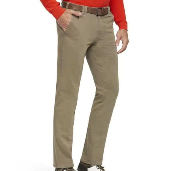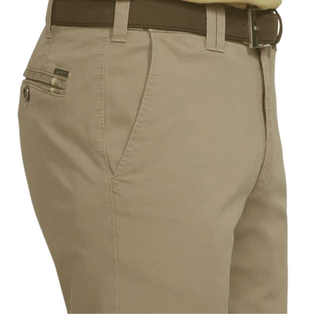 These Meyer Rio Sand Cotton Chinos with a slim silhouette are made from a breathable cotton in a smart Spring and Summer sand colour. Stylish design combined with sophisticated features such as two buttoned welt pockets at the back, and French style side pockets with a zip coin pocket.