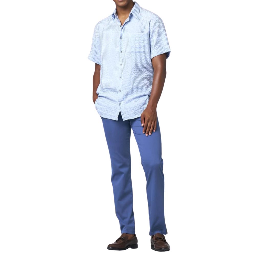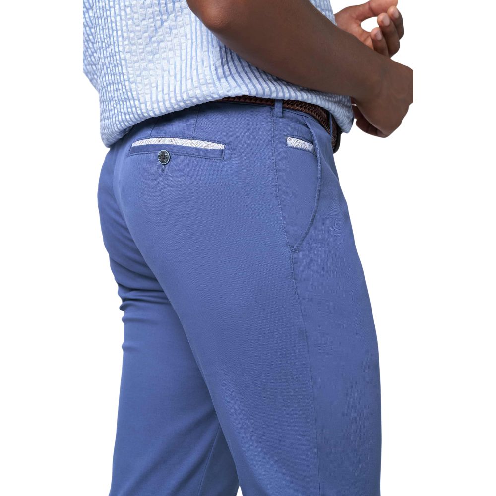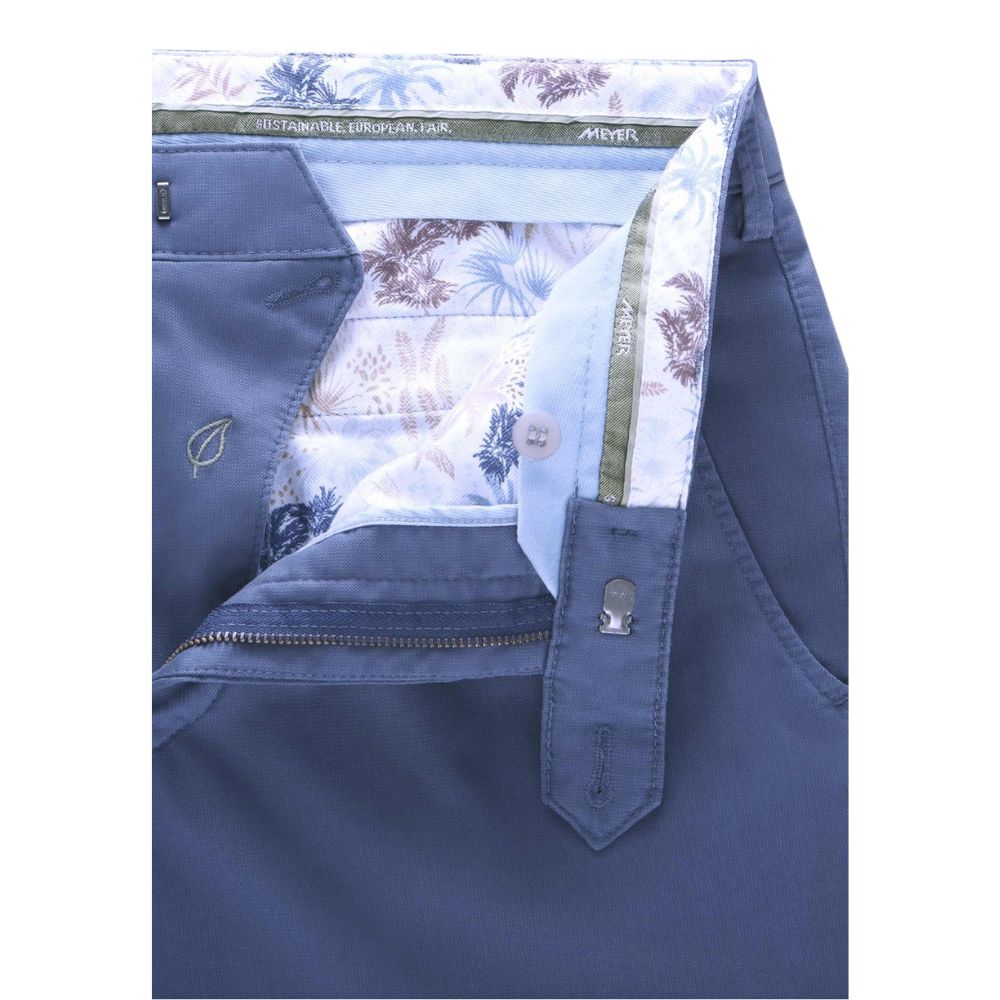 These Meyer Roma French blue cotton chinos with a regular silhouette, made from pure cotton. Stylish design combined with sophisticated features such as two buttoned welt pockets with a soft blue two tone inner pocket at the back and on the sides for a versatile all round summer trouser.