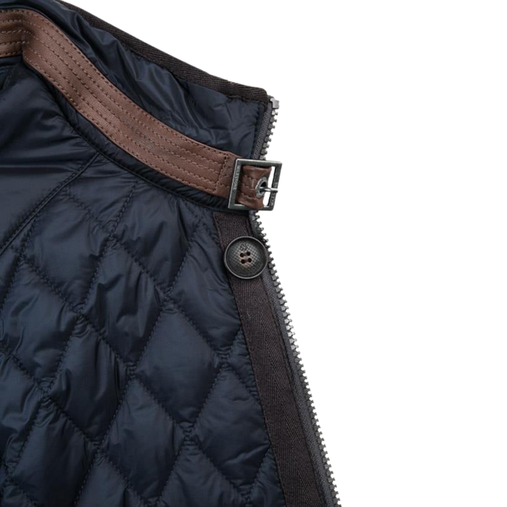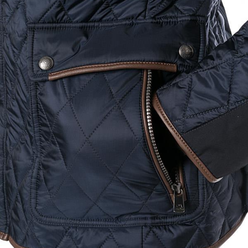 Microfibre quilted jacket from Milestone this modern quilted jacket features a classic diamond quilting and a slim cut. Decorative elements made of faux leather in a contrasting color, as well as an adjustable stand-up collar, give this model a fashionable and stylish look.
