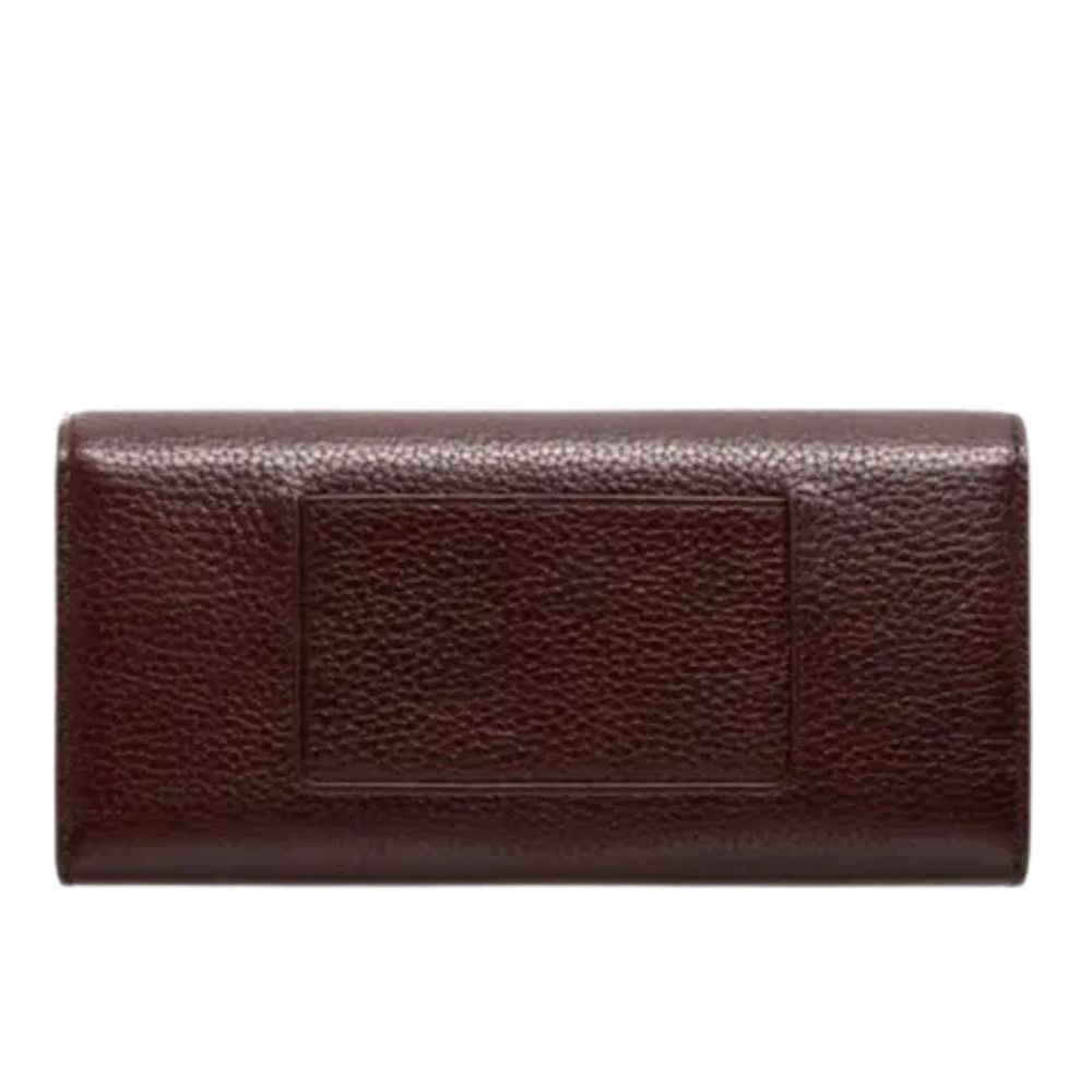 Postman’s lock closure Two gusset compartments One zipped compartment Two interior slip pocket One note compartment Twelve credit card slots One external zip pocket for card Brass component finish