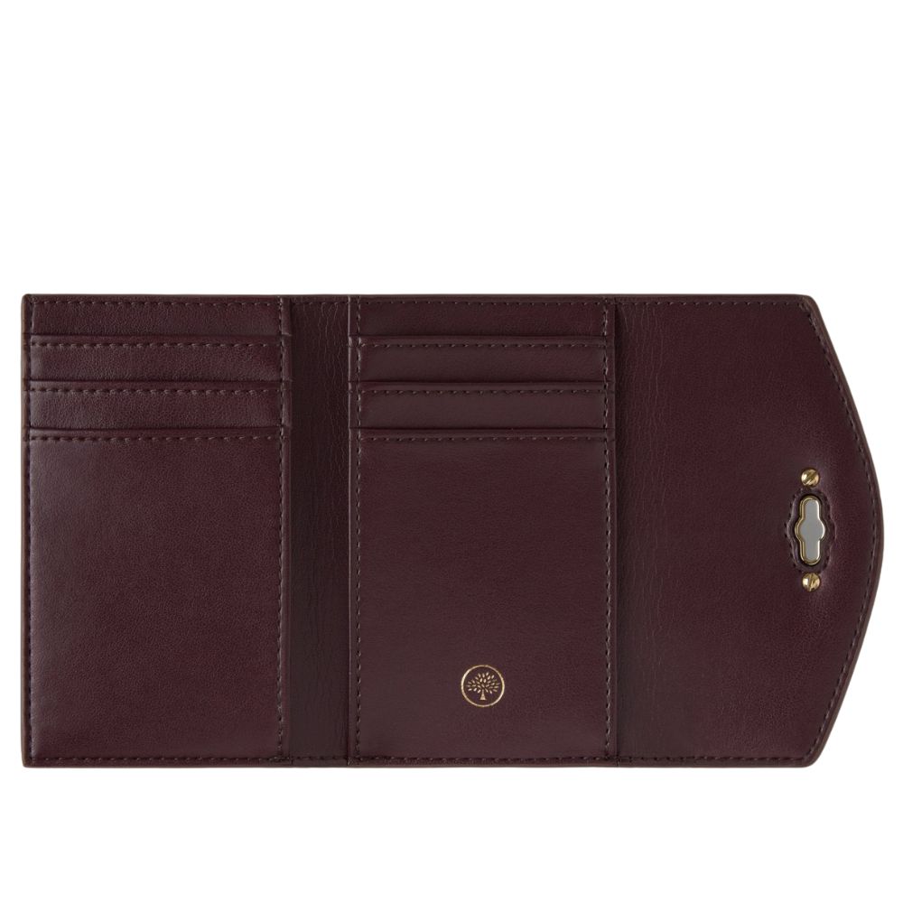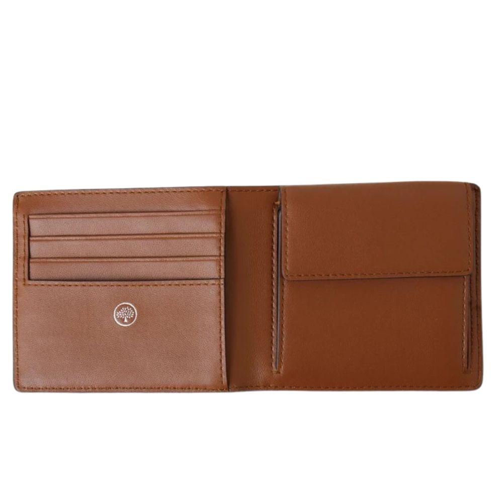 External foil embossed Mulberry signatureInternal foil embossed Mulberry TreeOne compartment for notesFour credit card slip pocketsCoin compartment with popper closureOne slip pocketNappa liningSilver hardware finish