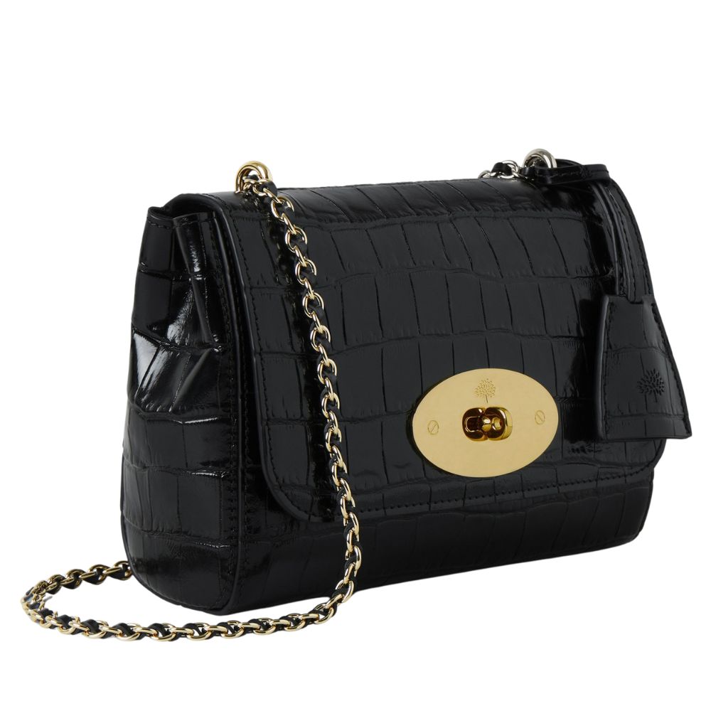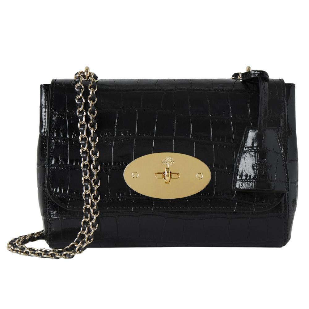 The Mulberry Lily black bag is an effortlessly elegant style often chosen as an evening bag due to its versatile size and compact shape. The Lily has a woven leather and chain strap that can be worn short or long, and is finished with signature details such as our iconic Postman’s Lock and leather padlock fob.