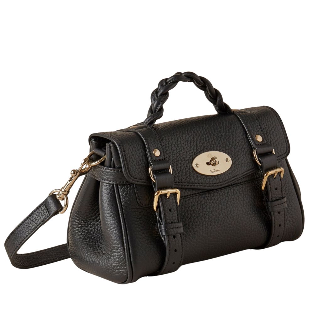 The Mini Alexa effortlessly combines elements from two iconic Mulberry styles: the Bayswater bag and the Elkington briefcase. The result is a miniature version of an understatedly cool satchel complete with the signature Mulberry Postman’s Lock and belt buckle and strap hardware. Carry by the plaited leather top handle or wear with the adjustable cross body strap.