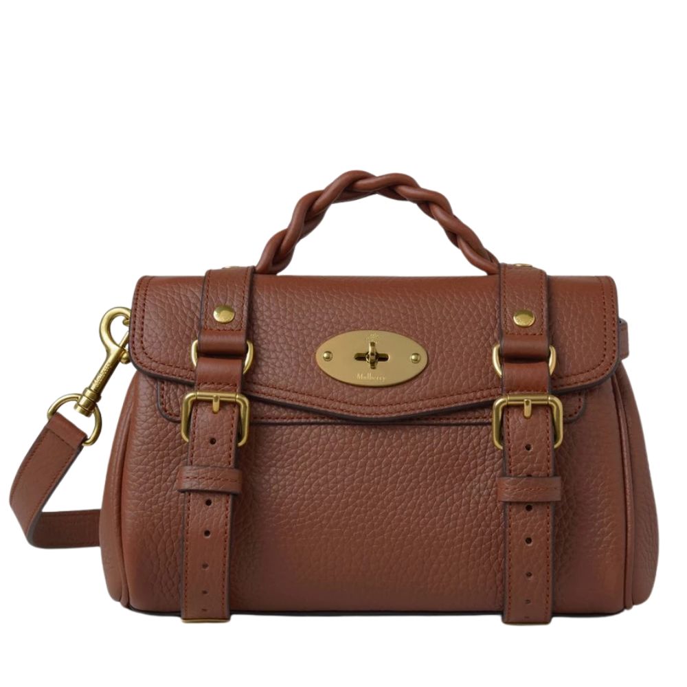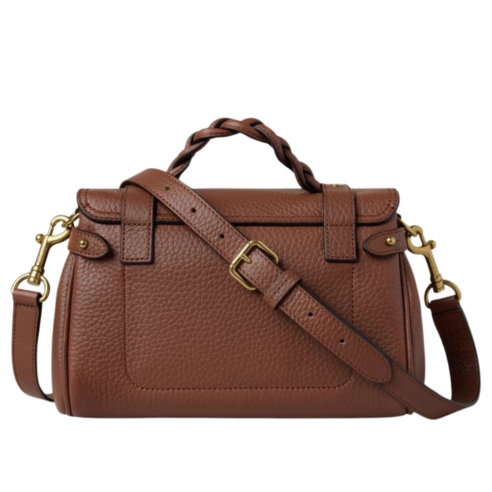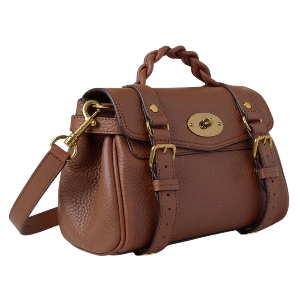 The Mini Alexa effortlessly combines elements from two iconic Mulberry styles: the Bayswater bag and the Elkington briefcase. The result is a miniature version of an understatedly cool satchel complete with the signature Mulberry Postman’s Lock and belt buckle and strap hardware. Carry by the plaited leather top handle or wear with the adjustable cross body strap.