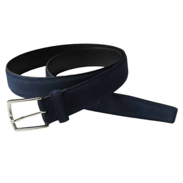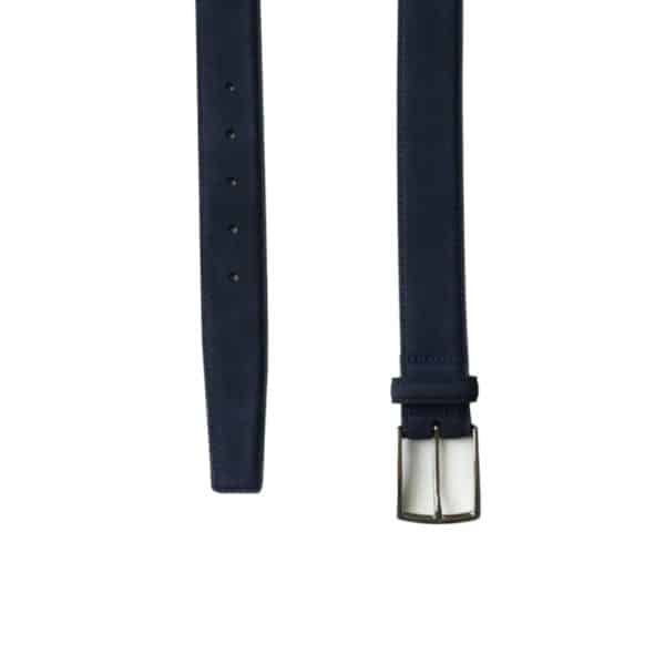 A beautiful Olimpo navy suede leather belt. This deviates from the usual range of ‘play-it-safe’ accessories and adds flair to a usually ho-hum look. Men’s navy leather belt. Made in Spain
