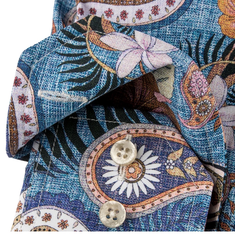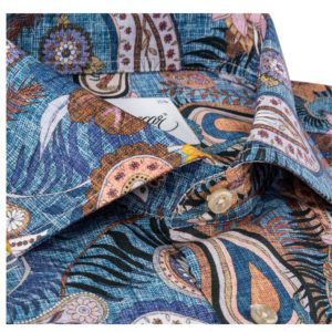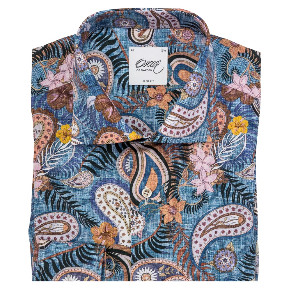 This shirt from Oscar of Sweden is a smart casual style shirt featuring a paisley pattern, and cut to slim fit from a cotton fabric. A modern and stylish shirt to wear with one of our selection of jeans, or for a smarter look, pair this shirt with one of our blazers.