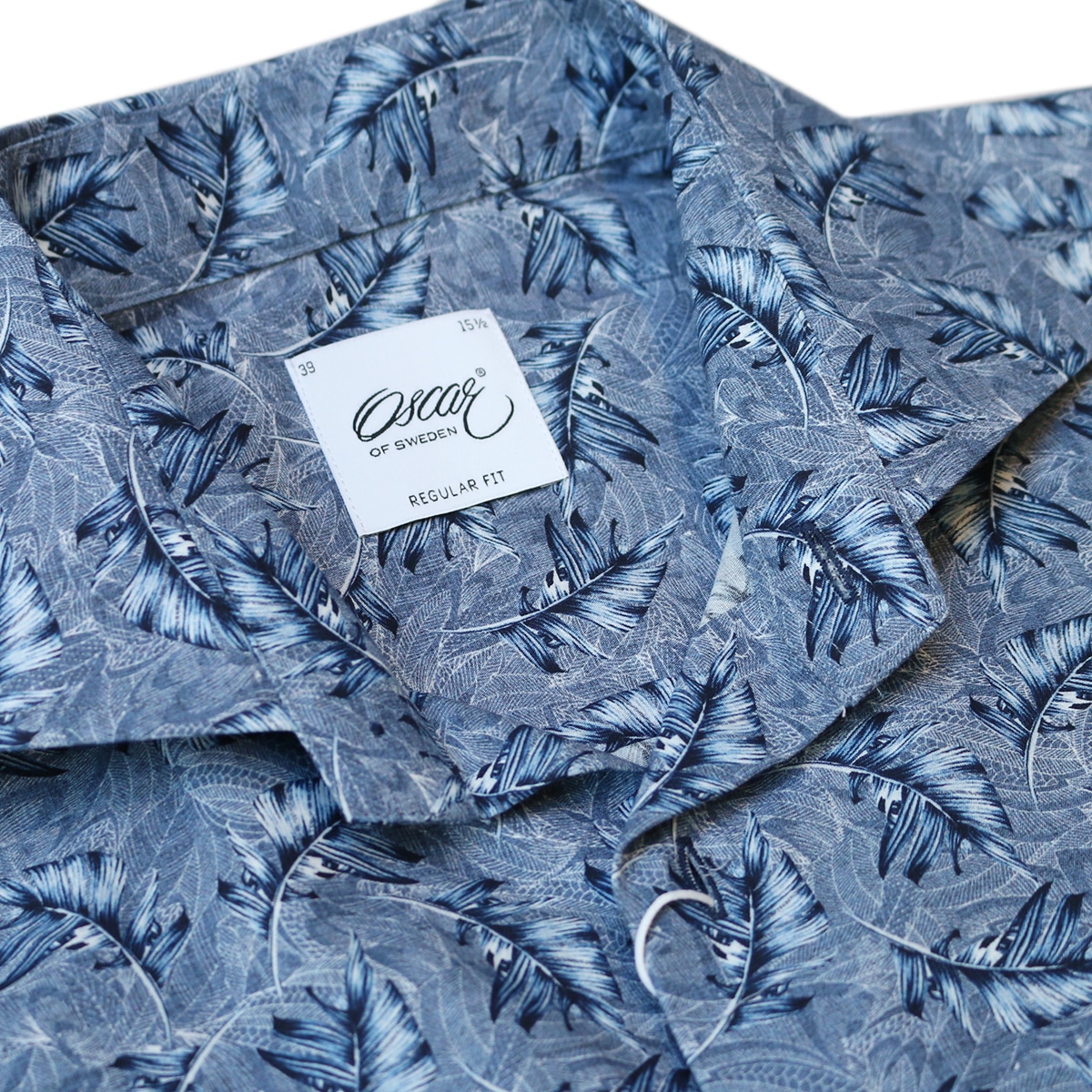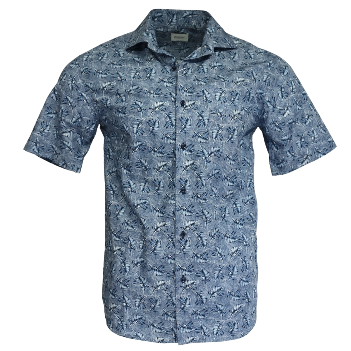 This regular fit Oscar Of Sweden blue feather short sleeve shirt has a chest pocket, made from 100% cotton, and is a perfect spring and summer fun shirt.