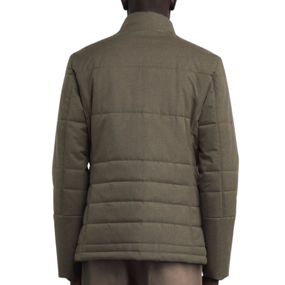 This Navy Pal Zileri Lightweight Green Puffer Jacket With Stand Up Collar is a sleek outerwear essential. This Pal Zileri Lightweight Puffer jacket is crafted from lightweight technical fabric for a modern, functional edge. Cut for a clean silhouette, it features a stand-up collar, concealed zip closure and a streamlined finish.