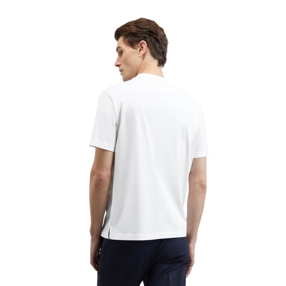 The Pal Zileri White T-shirt is the epitome of understated elegance. Crafted from luxurious mercerized cotton, it offers a smooth, refined texture and a subtle sheen. This pristine white t-shirt provides a versatile foundation for any wardrobe, embodying Pal Zileri’s commitment to impeccable quality and timeless style.