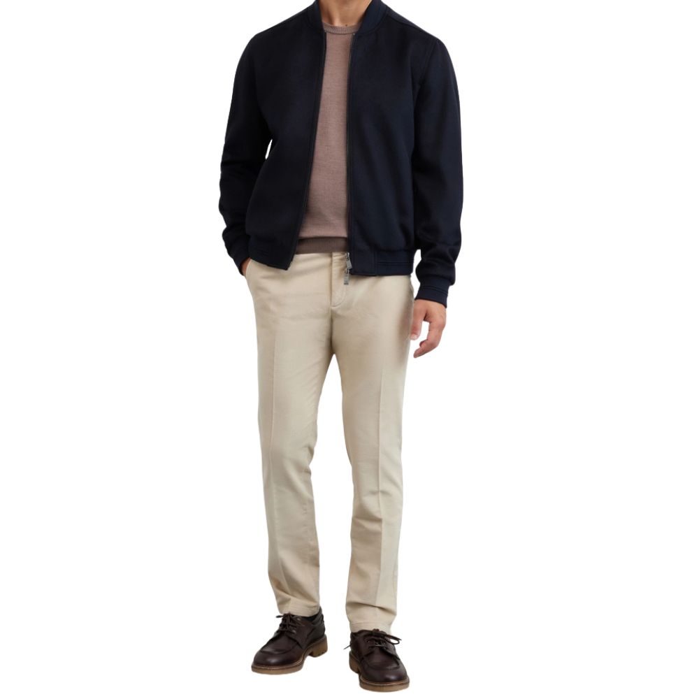 The Pal Zileri Navy Bomber Jacket redefines contemporary elegance with a distinctive beaver-effect finish that adds depth and character to the fabric. It balances refined texture with modern durability, ensuring lasting comfort and performance. Designed in a regular fit, the jacket follows the male silhouette with ease, offering a sophisticated yet versatile outerwear piece for any occasion.