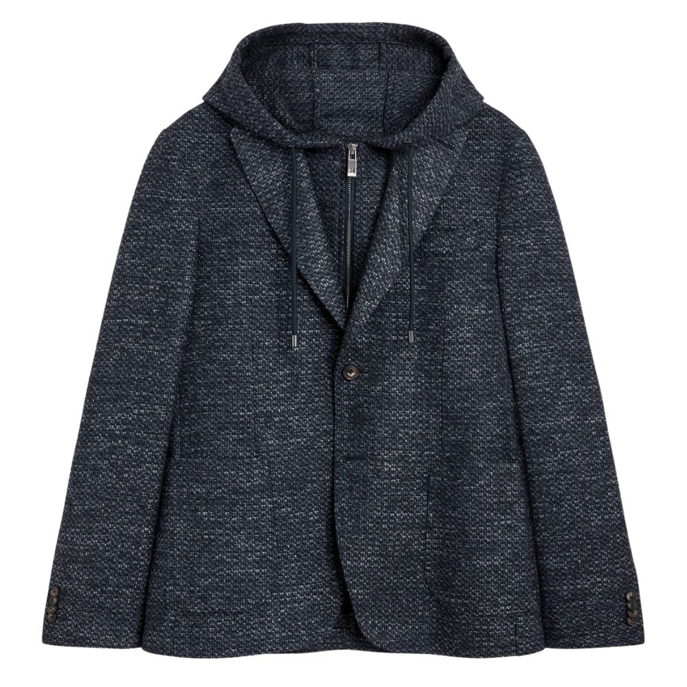 Pal Zileri Navy Houndstooth Soft Technical Jacket with Removable hood