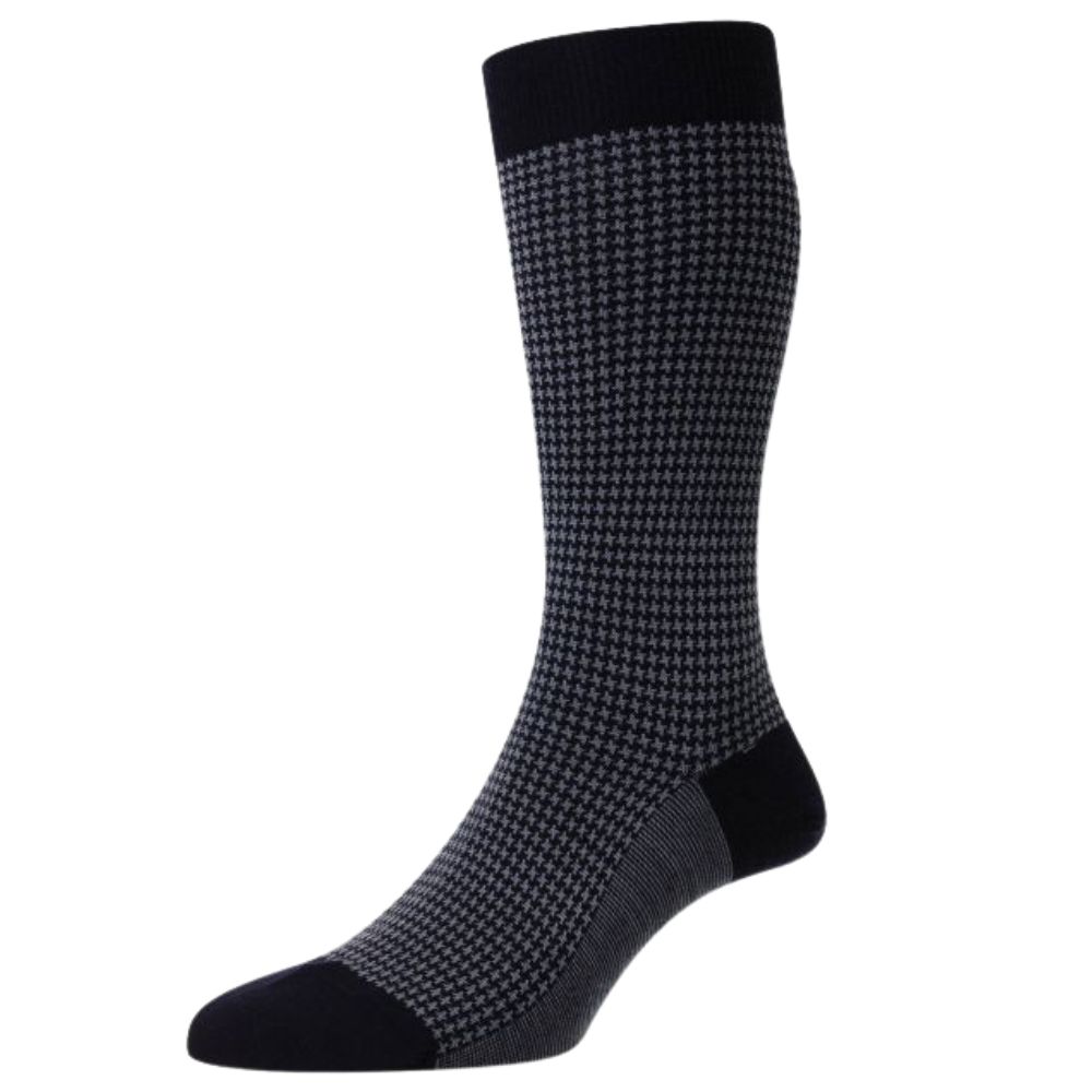 Pantherella Highbury Houndstooth Merino Wool Navy Socks
