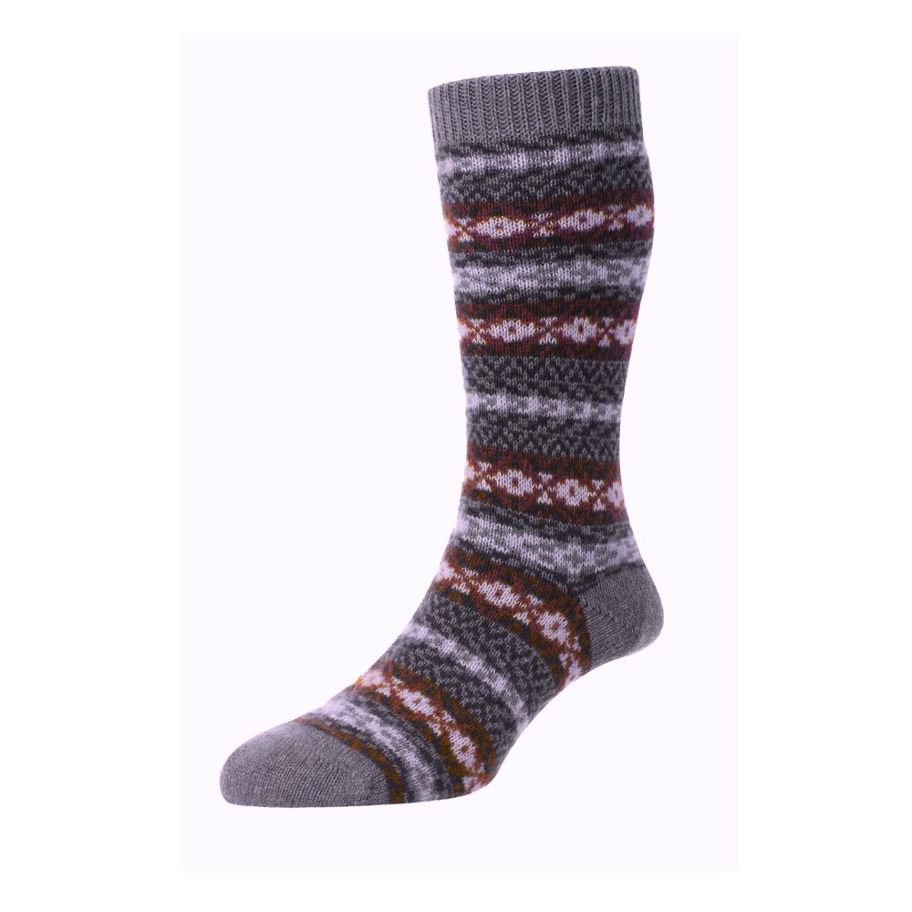 These Pantherella Bradstock cashmere men’s socks combine the luxury of cashmere with the traditional style of fair isle patterning. The ultra-plush fibre traps heat thoroughly, keeping you warm in the coldest seasons. These cosy socks are the ideal partner for chilly mornings or evenings lounging by the fire.
