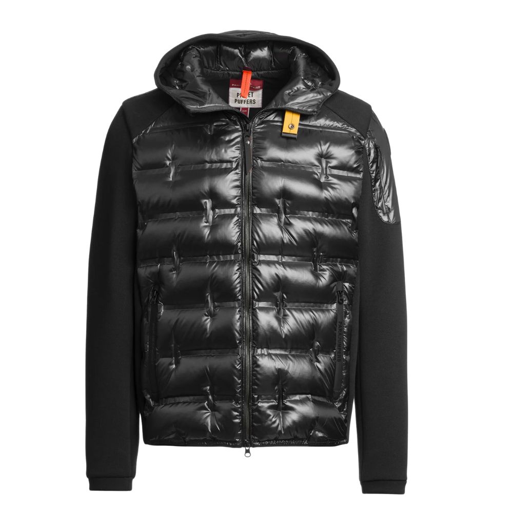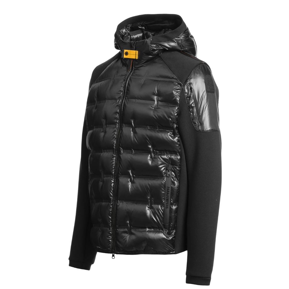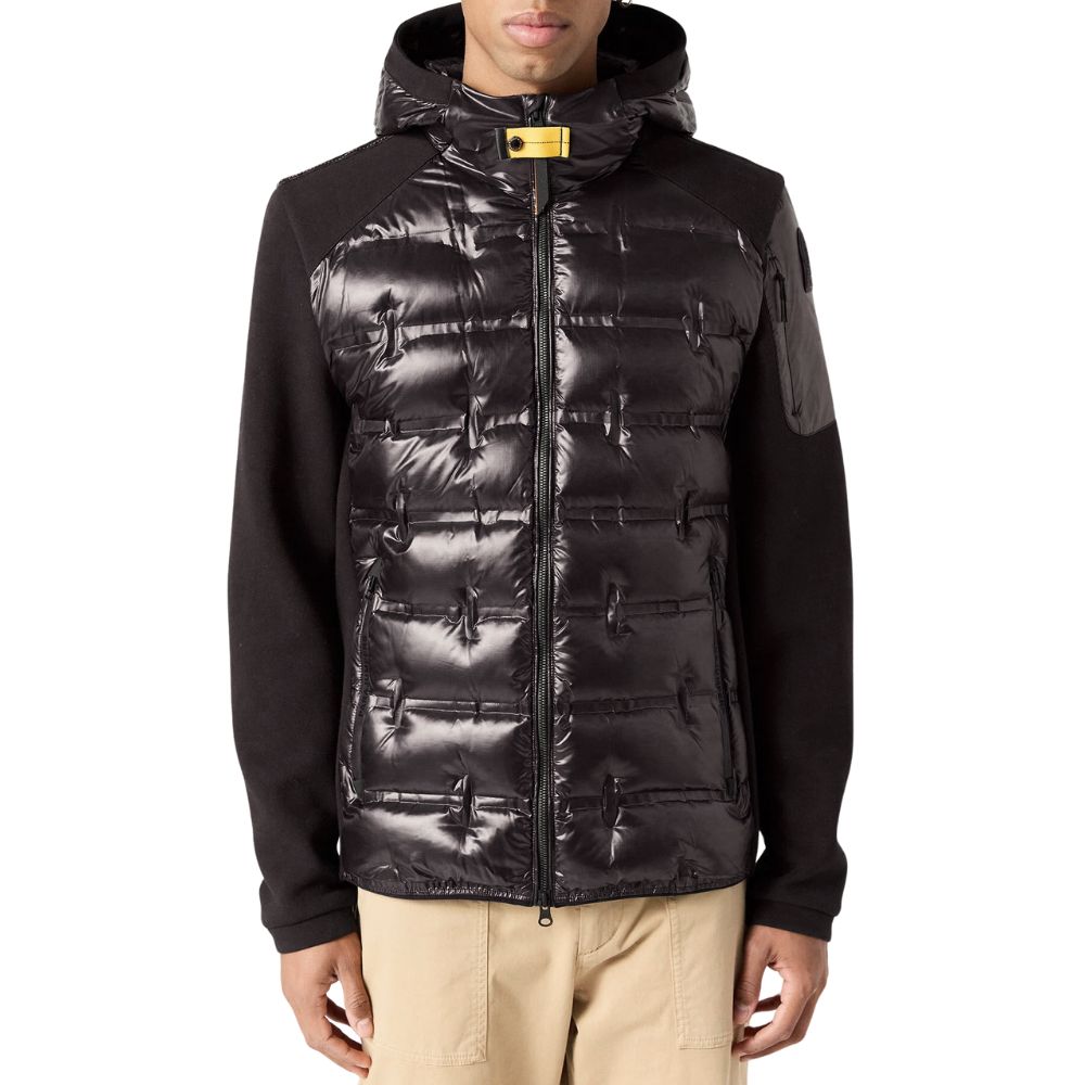 The Parajumpers Gyles Hooded Black Hybrid Jacket offers recycled fabrics, premium down fill, and versatile protection in a sleek, modern design.