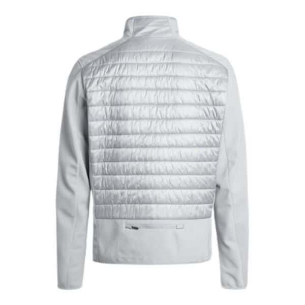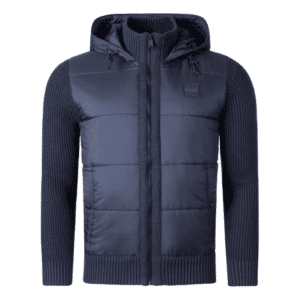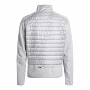 Jayden is a hybrid jacket that combines stretch polyester honeycomb with semi-shiny and down-proof nylon taffeta.
