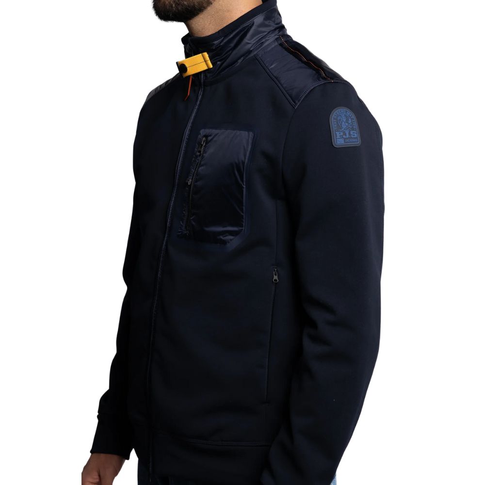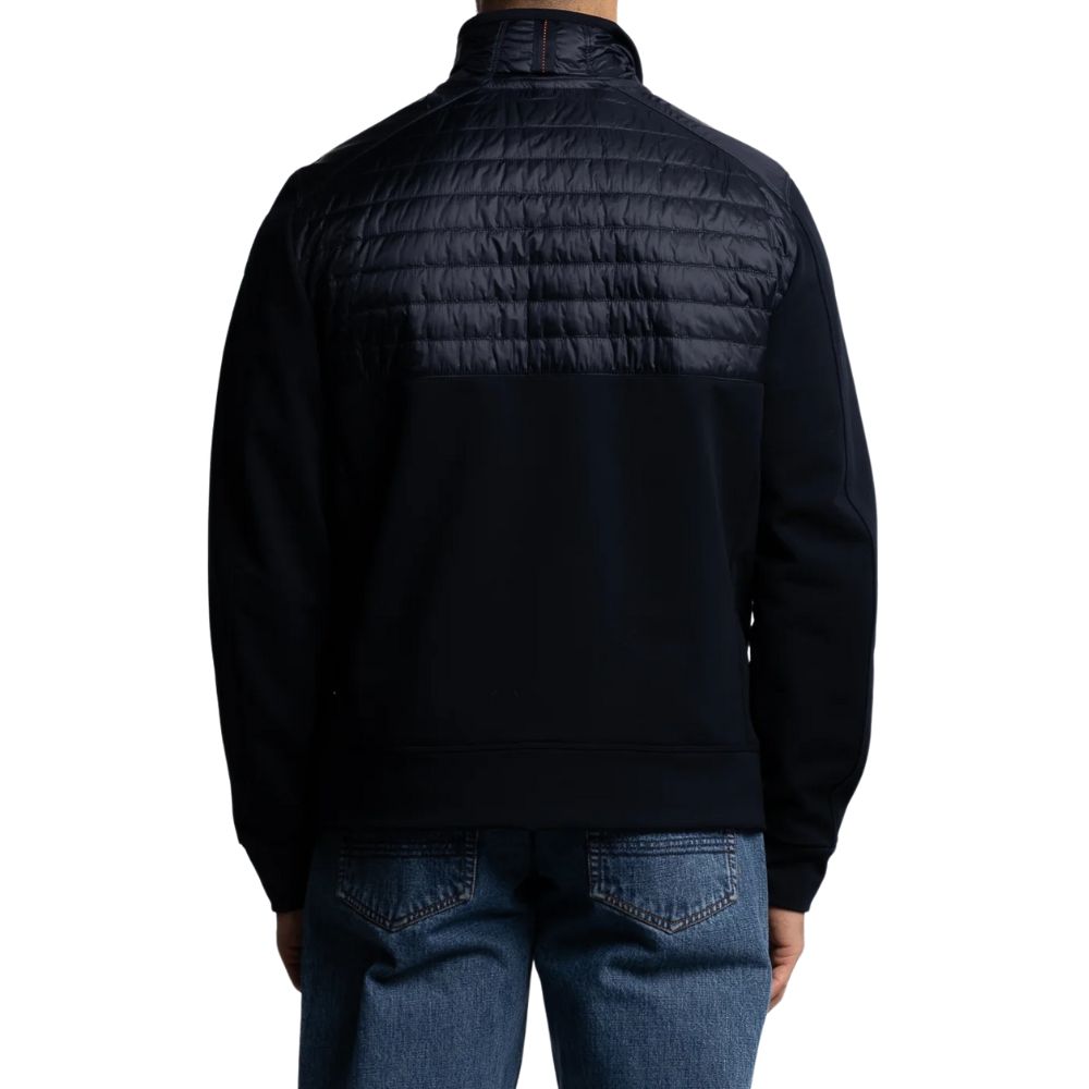 London is a hybrid sweatshirt that combines a polyester French terry fleece with recycled nylon inserts padded with ultra-light wadding