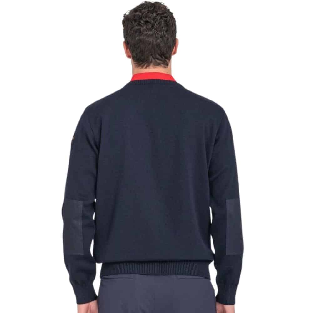 This Paul & Shark v-neck jumper is comfortable and breathable. This is a must have in any winter wardrobe. Crafted with a virgin wool blend combine with beige chinos and a white shirt for a contemporary look, it’s sure to impress.
