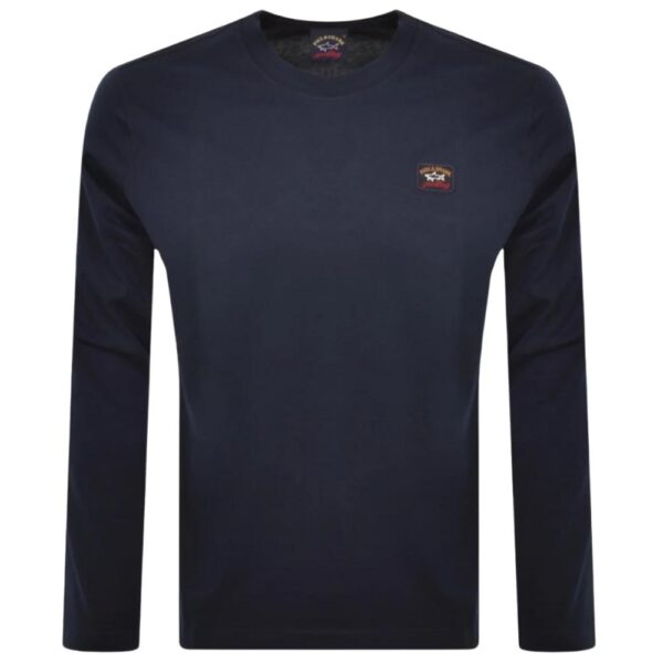 Paul & Shark Long Sleeved Logo T Shirt In Navy, A ribbed crew neckline and long sleeves. The signature woven Paul And Shark Yachting logo patch is situated on the left of the chest in navy, yellow, white and red. Top stitch detail on all the seams in navy. 100% Cotton.