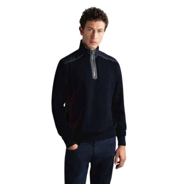 Perfect over a T-shirt or shirt, this half zip jumper is a core essential for a range of timelessly elegant layered looks. Ribbed trims create a snug feel and a well-defined silhouette, whilst our hallmark Fin Badge on the back signs off the look with a signature Paul&Shark touch. Enhanced with luxurious Loro Piana® details, this garment is knitted from pure Supima® cotton: an extra-long, fine fibre that offers superior performance in terms of strength, softness and resistance to pilling.