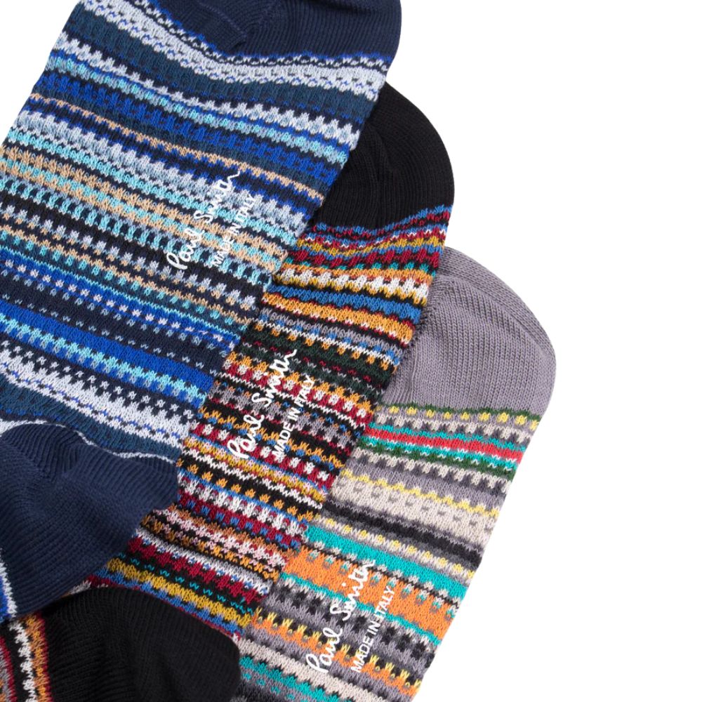 Made in Italy from a soft cotton blend, the PS Paul Smith 3 Pack Piqué Signature Socks showcase the iconic striped pattern in blue and grey tones. Finished with a black heel and toe, they deliver everyday comfort with a refined edge.