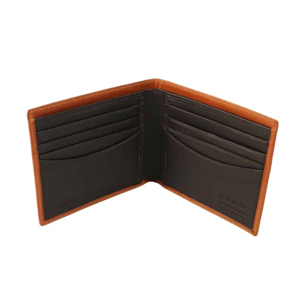 Paul Smith Bi Fold rust Wallet with Embossed Chain crafted from supple french calf leather with a light sheen finish.