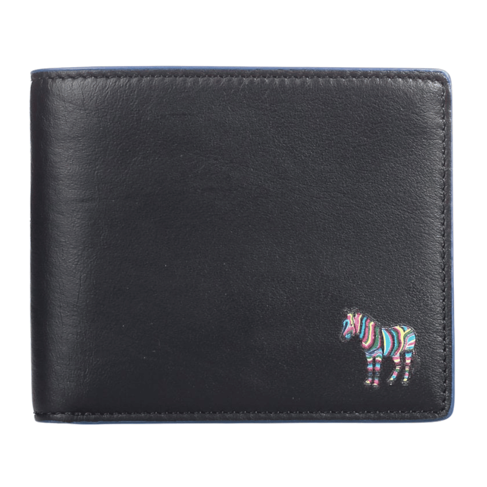 Paul Smith Billfold Wallet with Zebra in Black. Boasting the brands iconic Zebra appliqué to the exterior and designed for functionality – this billfold wallet offers six card slots, and a single note sleeve.