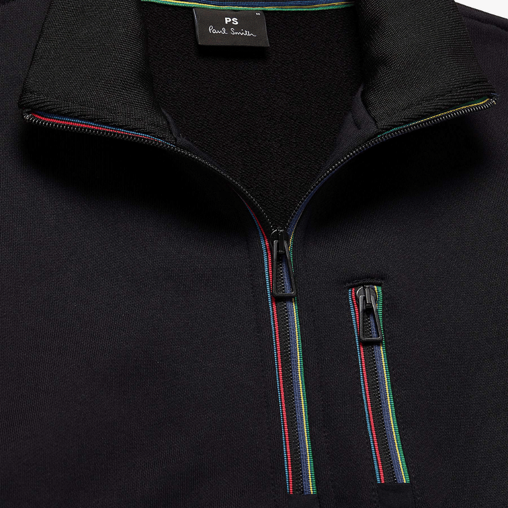 Designed in the rich and street-style savvy west end of London, PS by Paul Smith designs are full of colourful basics, modern graphics and dependable denim. This classic jersey top sticks to the sportswear original, built from a cotton-rich jersey with a charming stripe detailing at the zip neckline. Style yours with chinos, jeans or jogging bottoms.