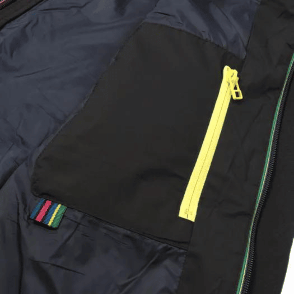 An institution of British style, PS Paul Smith brings fresh and re-imagined tailoring for a new era. Infused with signature Paul Smith detailing the mixed media hooded jacket boasts a wadded body with contrast jersey sleeves that is perfect for transeasonal weather. Crafted from a mix of polyester and cotton. Featuring a fixed hood with a full zip closure, twin front zip pockets and ribbed trims. Finished with the signature multi coloured stripe detailing at the zip closure and inner hood adding a playful touch.