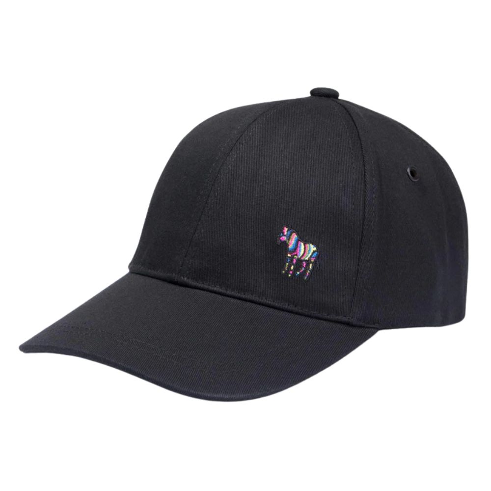 Paul Smith men’s navy baseball cap featuring our classic Zebra logo embroidered in an updated vibrant ‘Sports Stripe’ pattern, at the front. Made from 100% cotton, this cap is finished with a black inner band and lining.