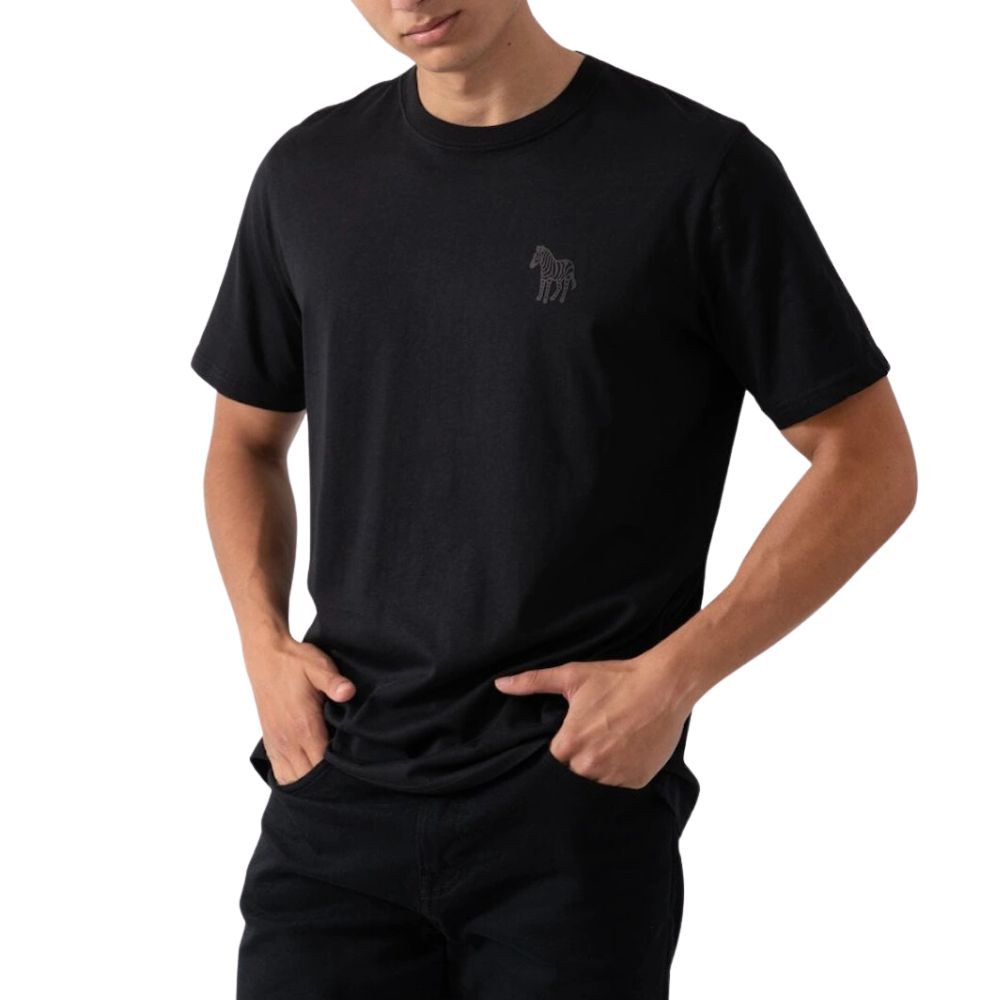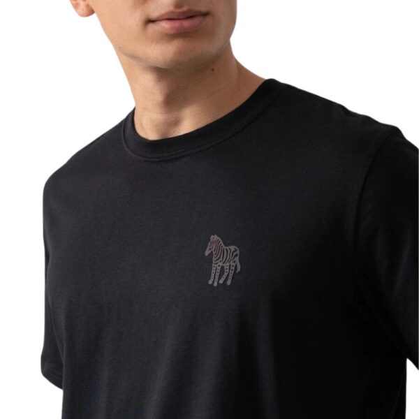 Paul Smith black T-Shirt in regular fit with a ribbed collar. A classic crew neck t-shirt by Paul Smith featuring a raised rubberised Zebra logo.