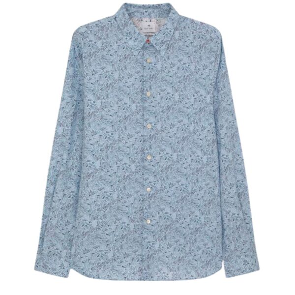 Crafted from rich organic cotton, this long-sleeve blue shirt features a ditsy ‘Chicory Floral’ print. Cut for a tailored-fit, this shirt is finished with a classic point collar and curved hemline.