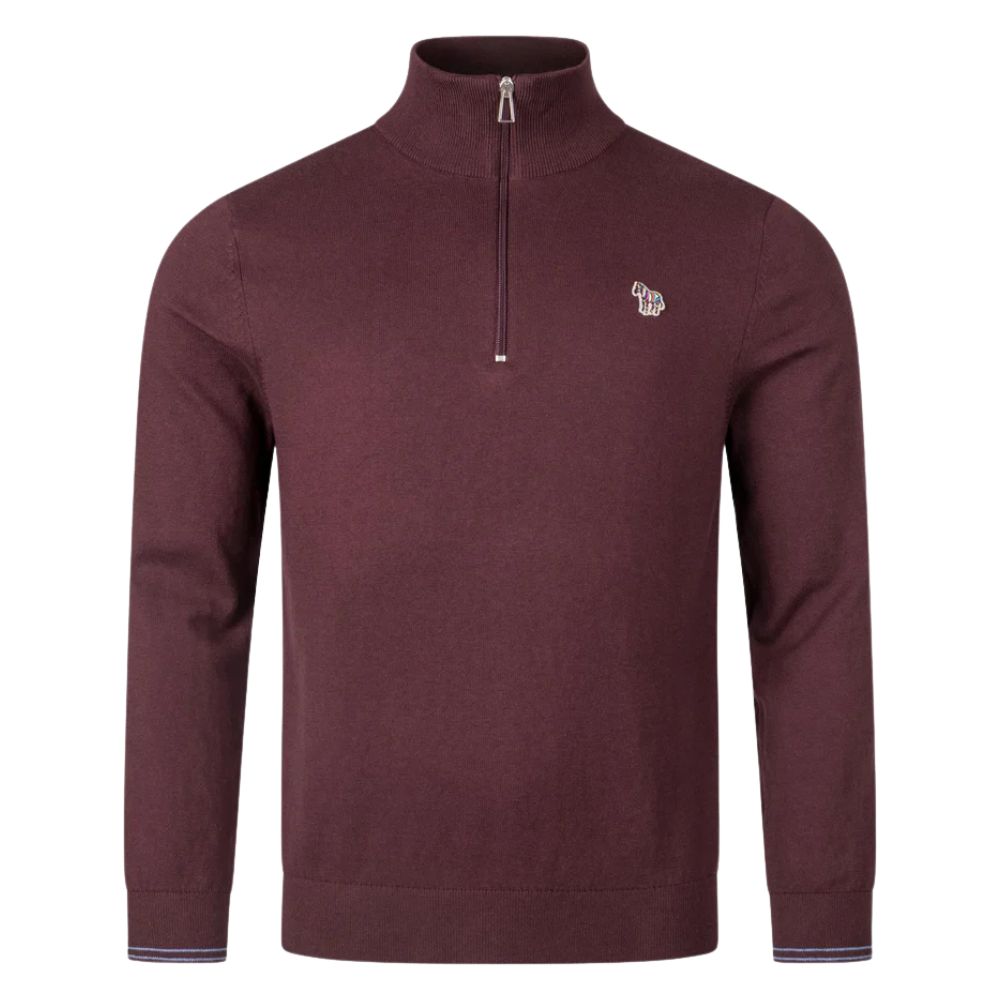 Upgrade your layering game with the Half Zip Zebra Logo Jumper by PS Paul Smith, dropping this season in a Very Dark Red colourway. Providing versatility and easy pairing to your casual or workwear wardrobe, this quarter zip is crafted from a soft cotton, nylon, and wool-blend for comfort. Detailed with a ribbed funnel neck, cuffs, hems, and the unmistakable zebra logo stitched on the chest. Finished with subtle stripe tipping on the cuffs.