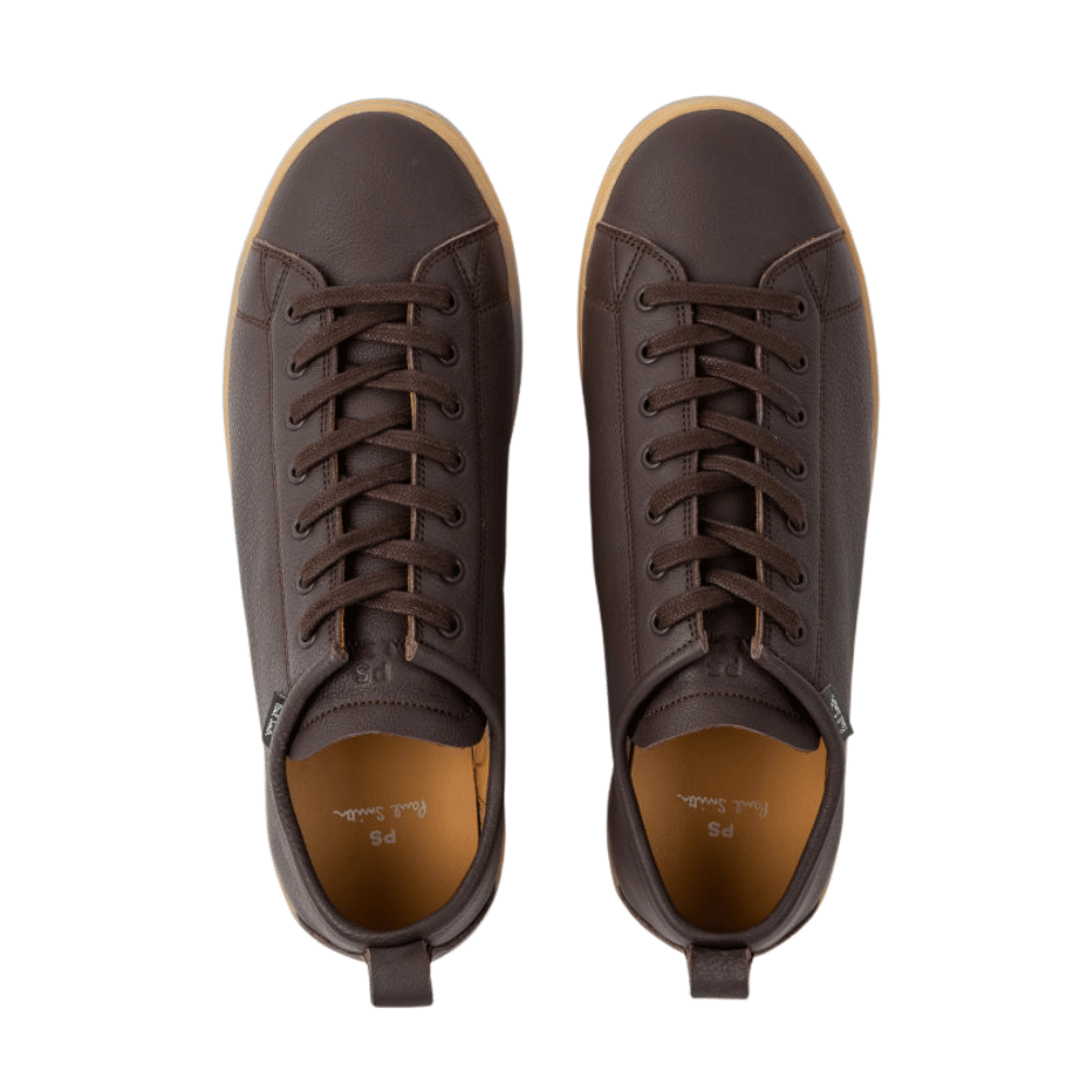 Crafted from smooth fine-grain leather, these sleek chocolate brown ‘Miyata’ trainers come complete with lightweight, textured rubber cupsoles with raised black heel logos.