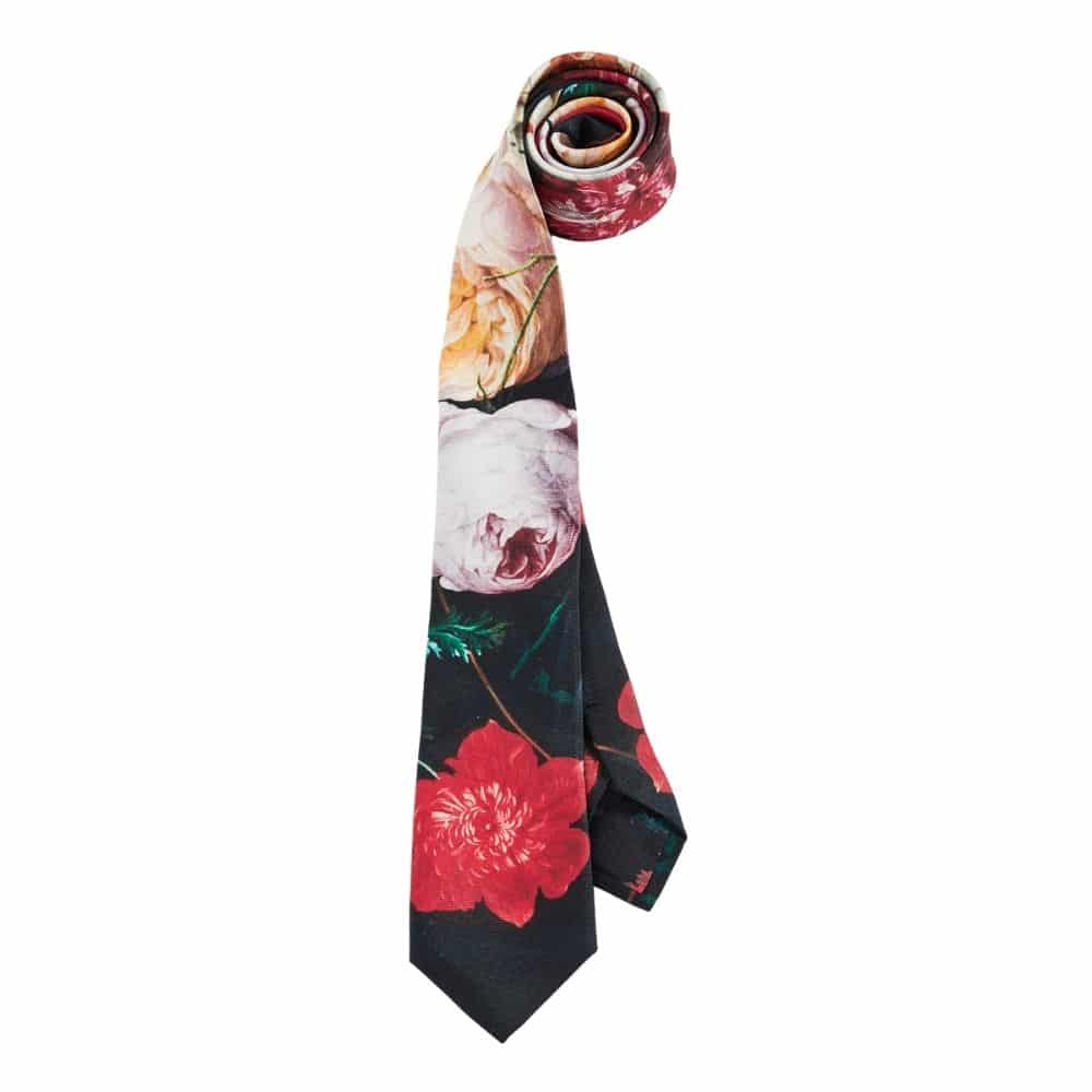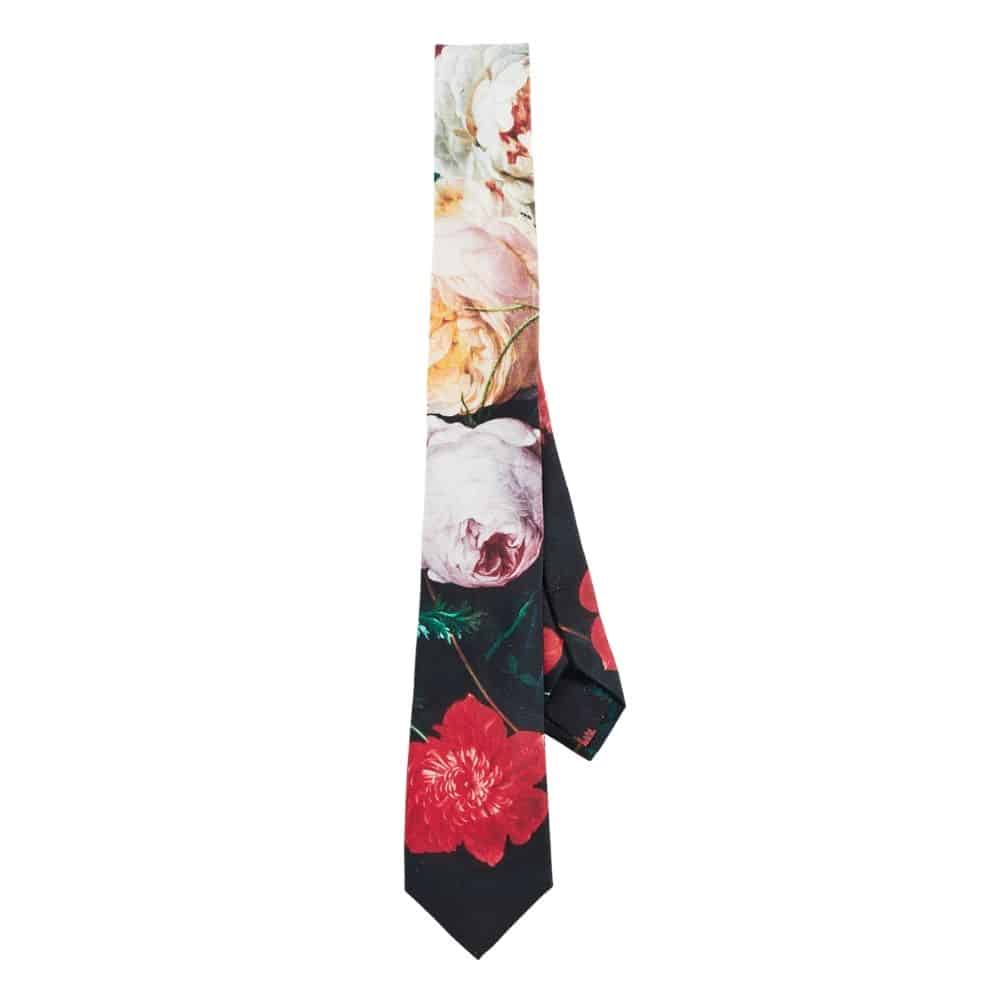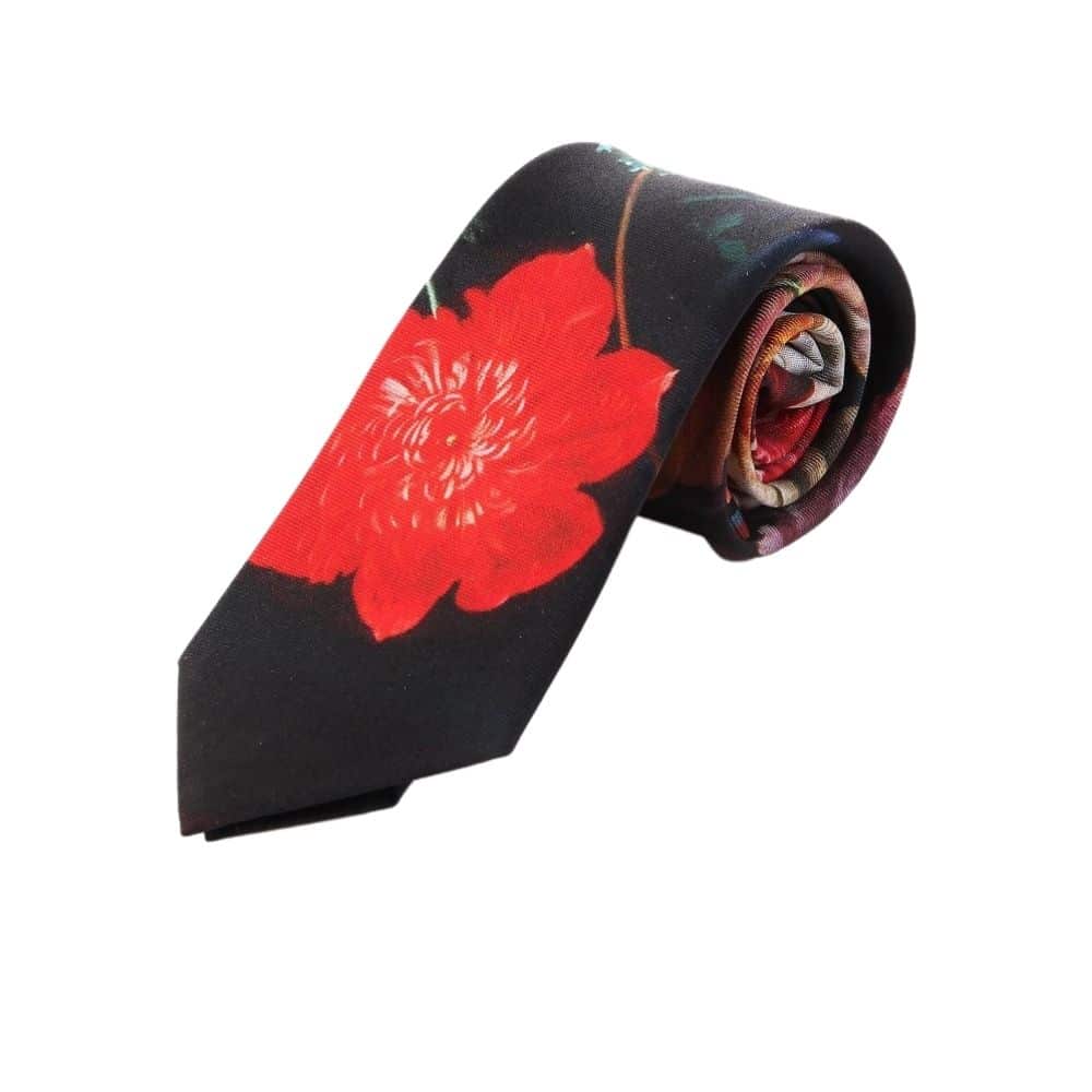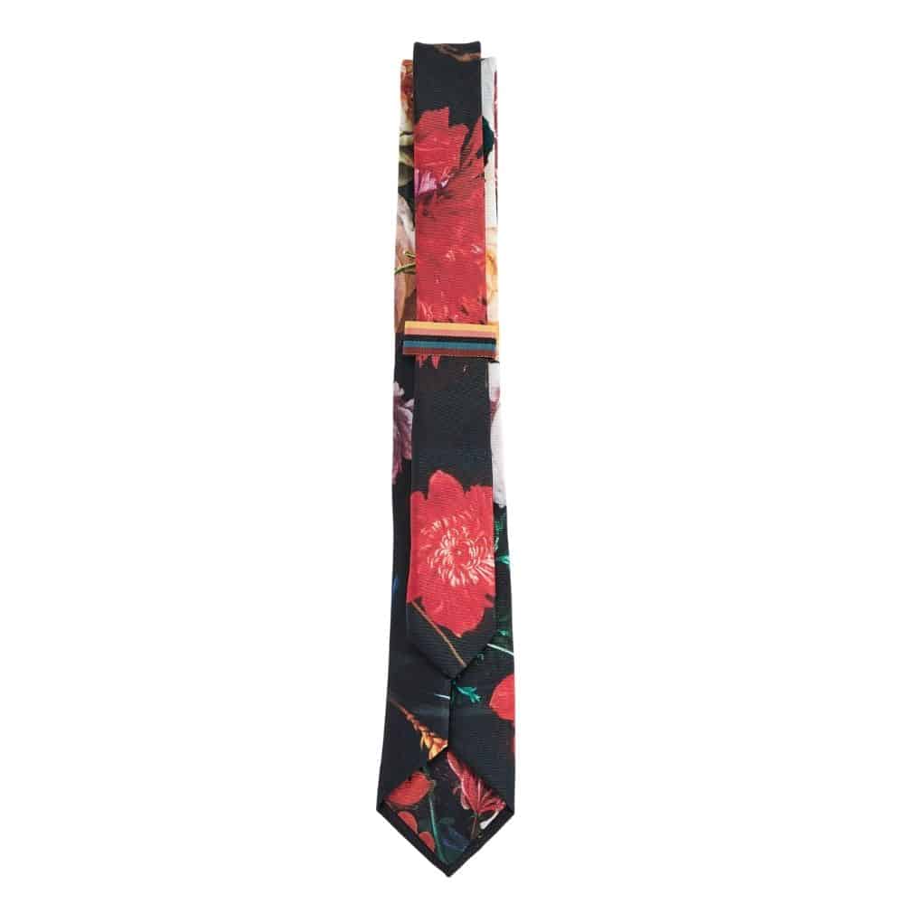Paul smith Floral Tie made in Italy of silk and featuring a bold, graphic print of flowers set on a black background. This tie adds a confident, eye catching detail to formal attire and is cut slim for a modern look.