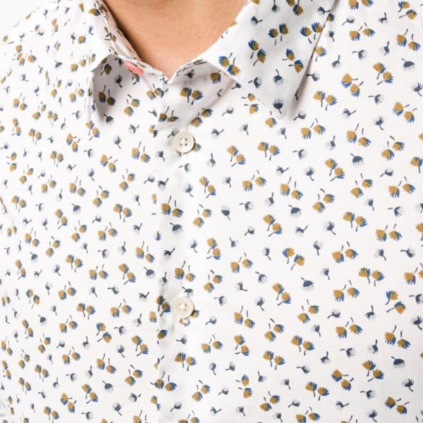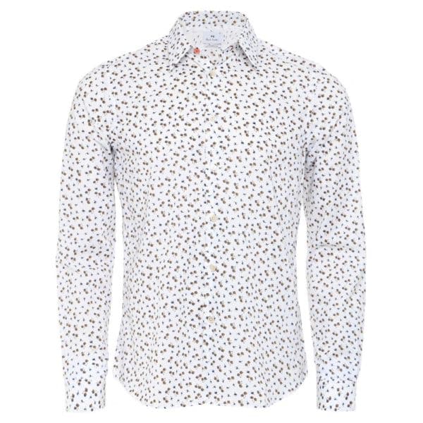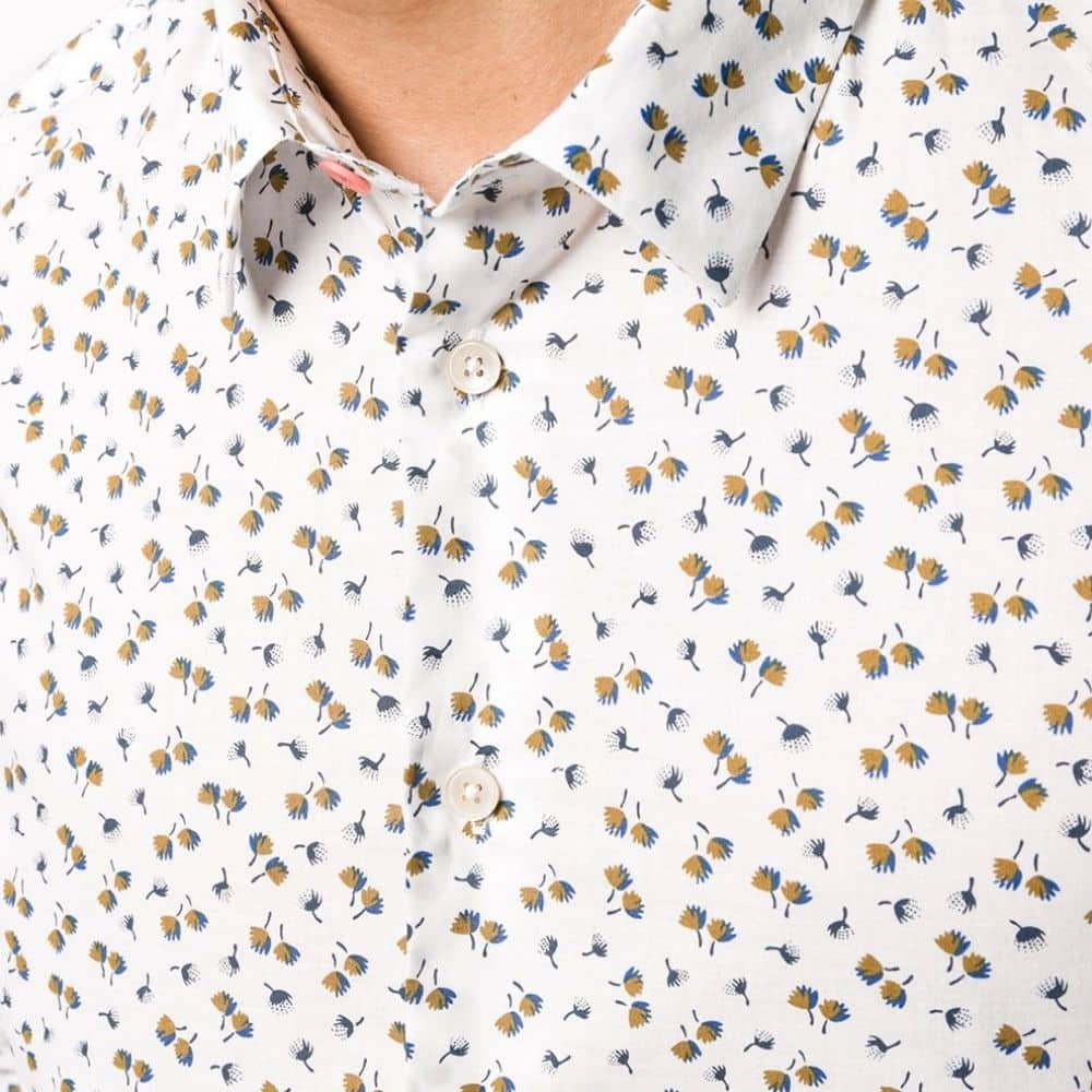 This Paul Smith Long Sleeve Dandelion Shirt in a tailored fit, with a curved hemline and pointed collar offers comfort as well as a contoured stylish silhouette.